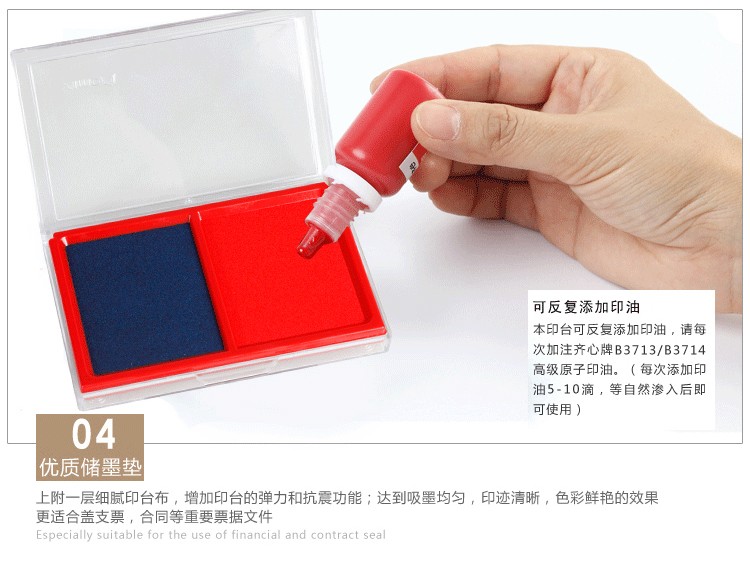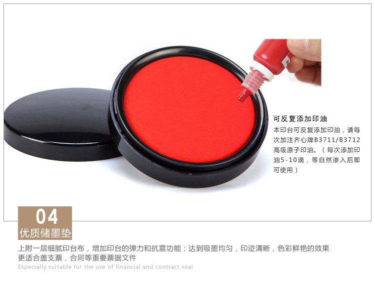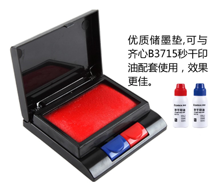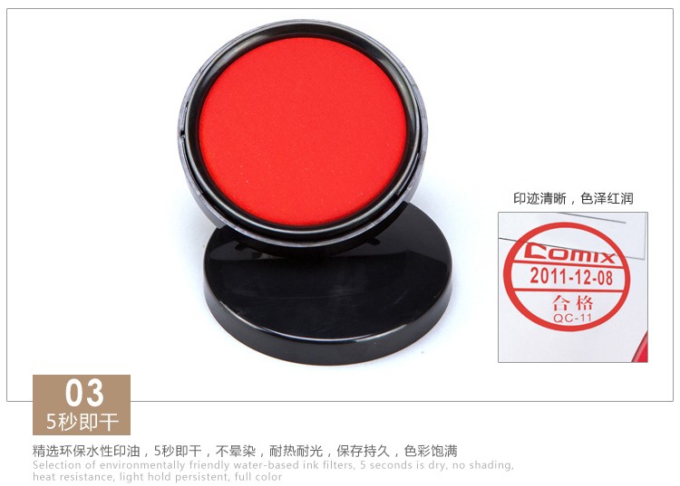 齐心(COMIX) 水性 油性 快干印台 速干印台 印油 红色 蓝色 速干印泥 印台 B3736 快干印台圆形铁壳 100mm 红色
