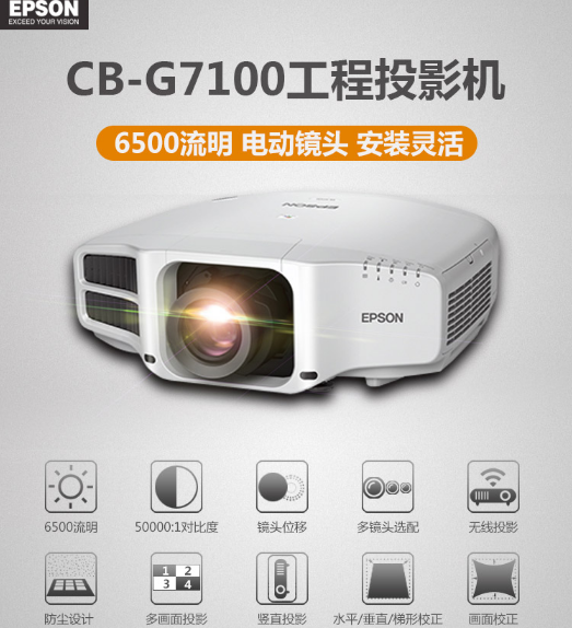 爱普生(EPSON)CB-G7100 投影仪 商用 办公 工程 标清 6500流明 竖直投影 电动镜头
