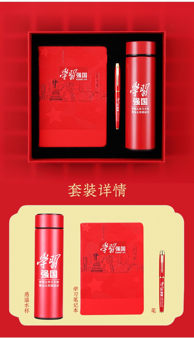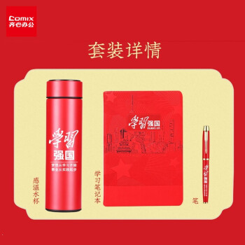 齐心(COMIX)党建套装笔记本礼盒套装带智能温度保温杯中性笔记事本礼盒装企业公司礼品定制 学习强国系列(笔记本+签字笔+显温杯)