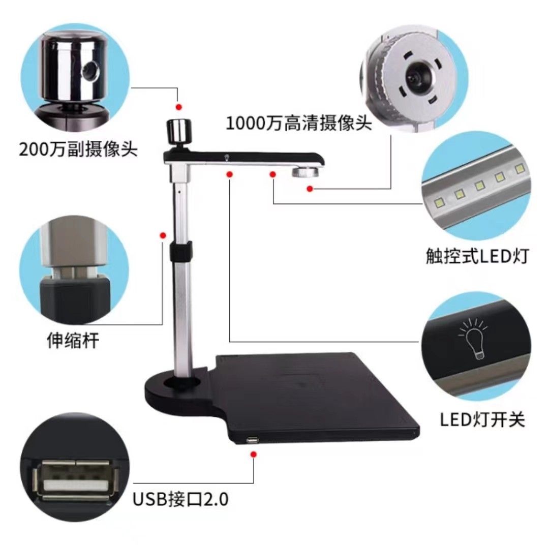 良田1020TR双摄像头高拍仪,主摄像头1000W像素。辅助摄像头200W 像素