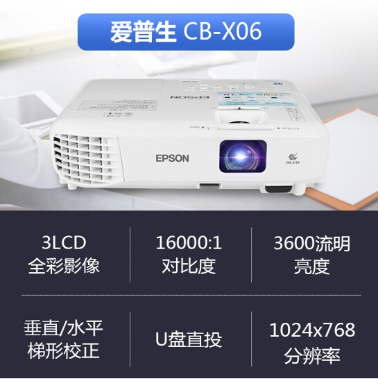 爱普生(EPSON)CB-X49 投影仪 投影机 家用 办公 会议 教育 标清 3600流明 HDMI接口 6秒开机 瞬间关机