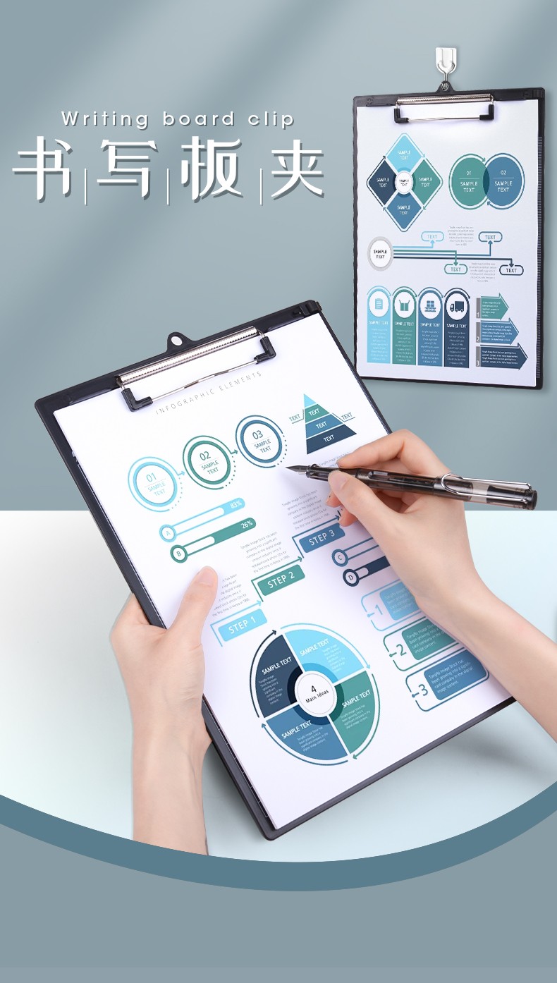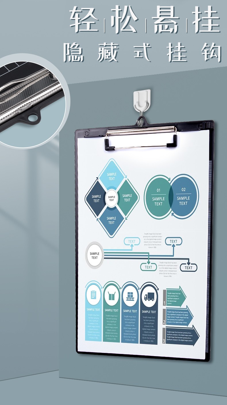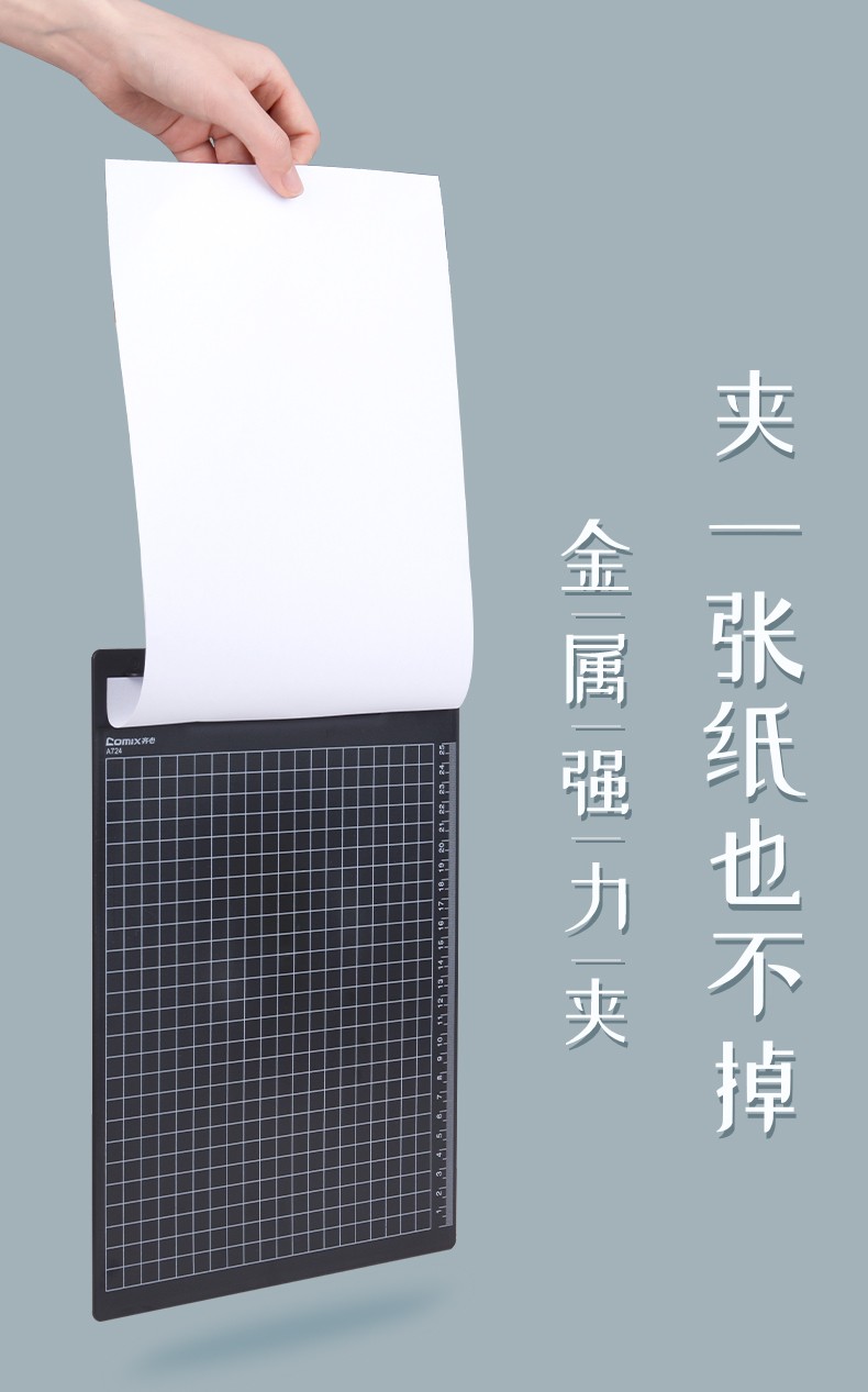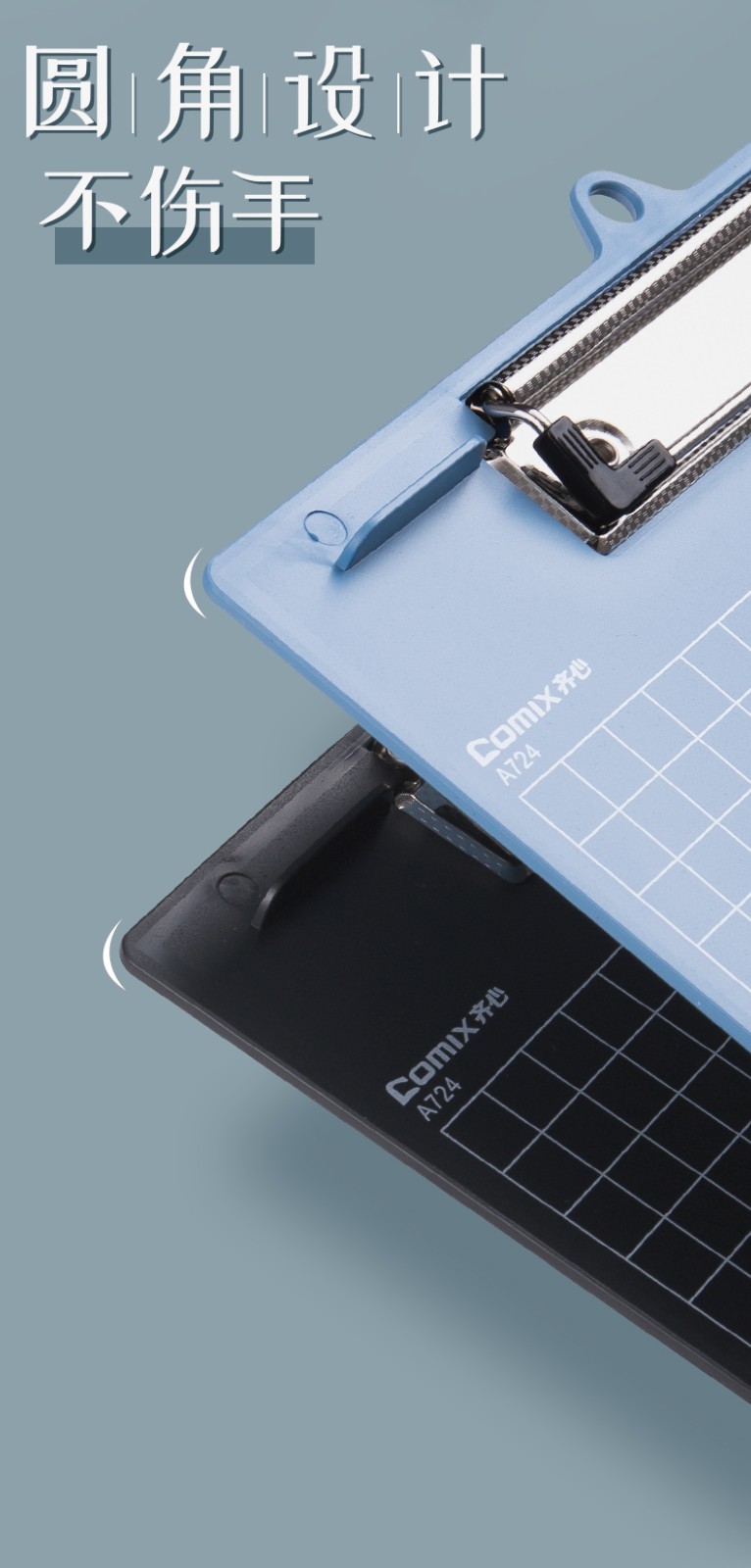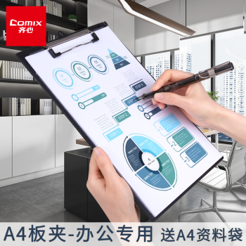 齐心(Comix)文件夹a4夹子文具书写板写字垫板硬塑料夹纸板点菜单夹办公用品票据资料多功能竖板夹 A724竖款蓝色1个【送】文件袋1个