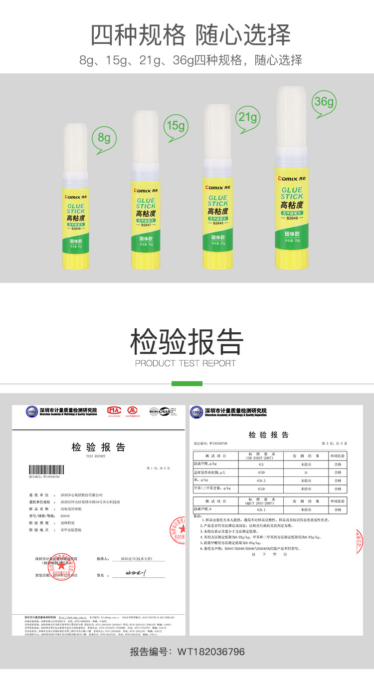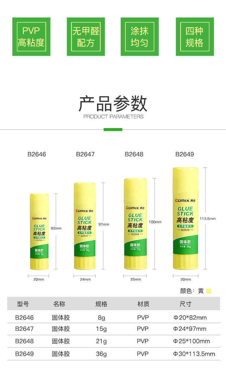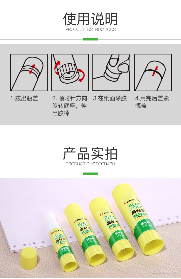 齐心 Comix 8g高粘度pvp固体胶棒 无甲醛配方办公用品 12只/盒B2646