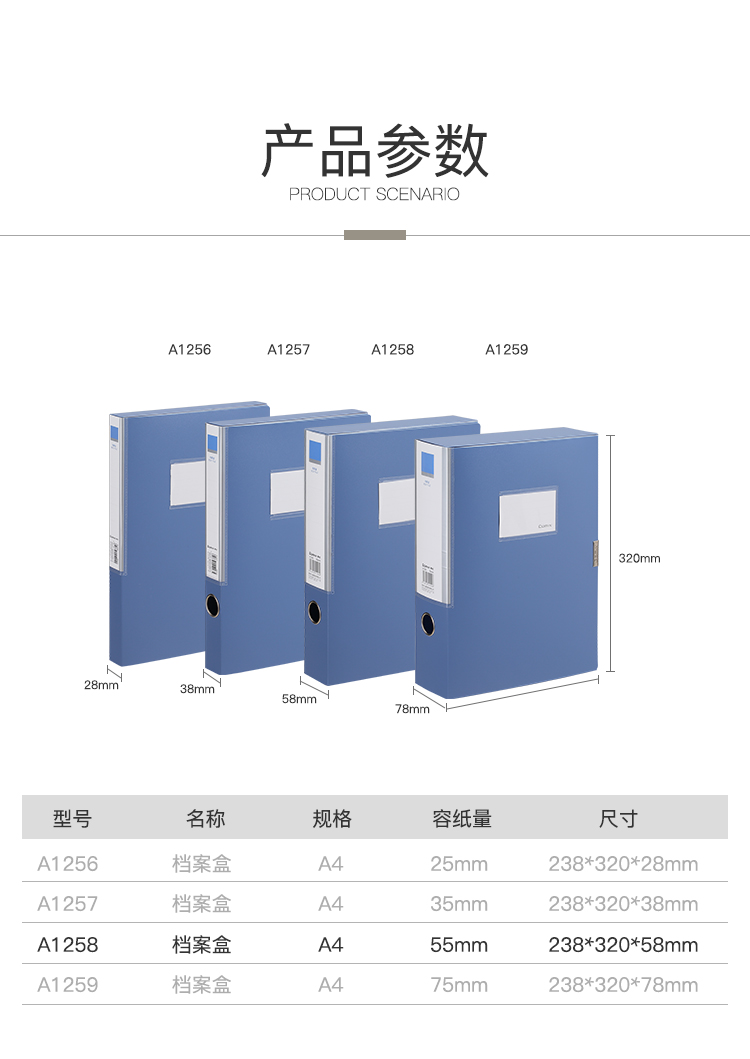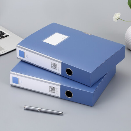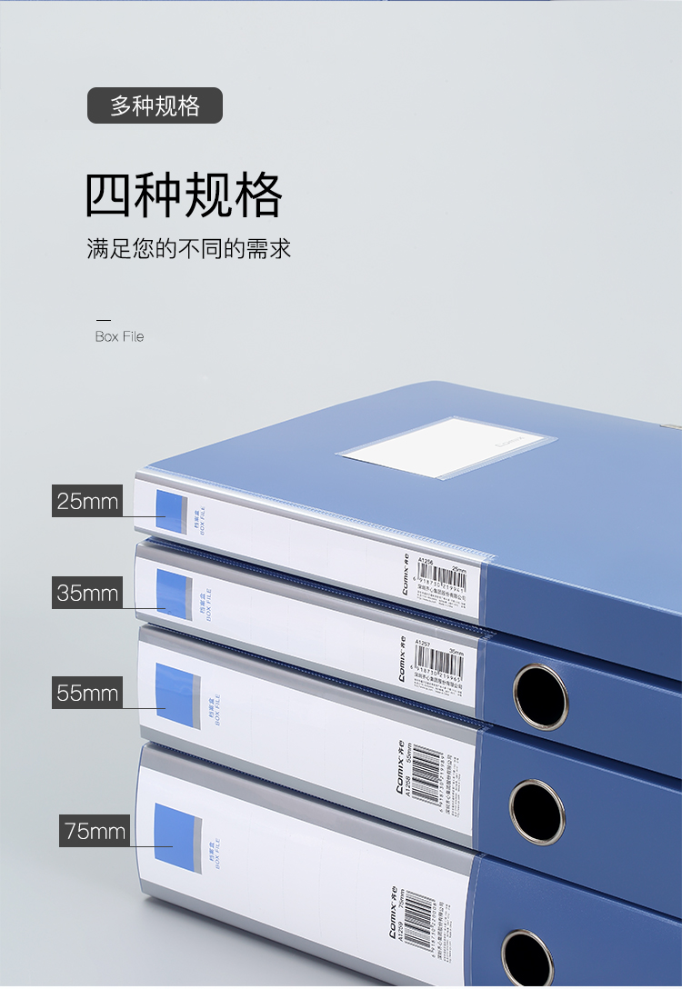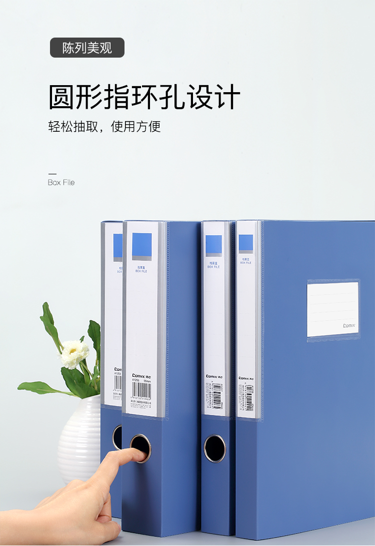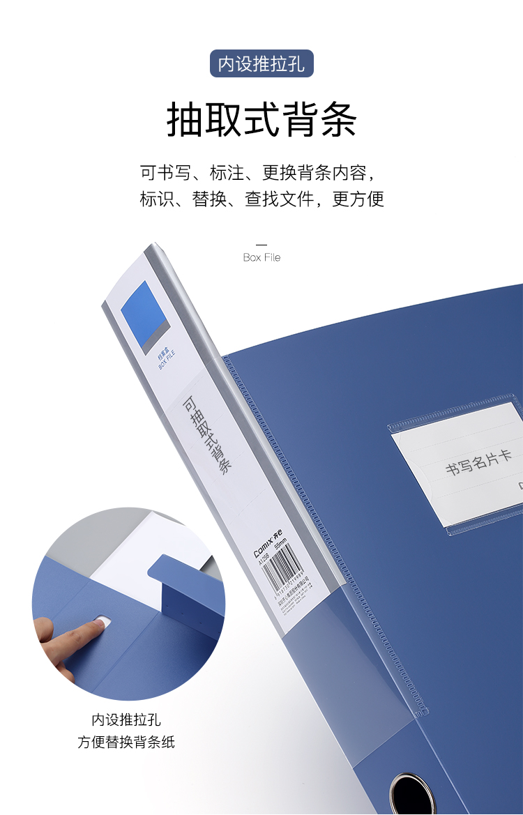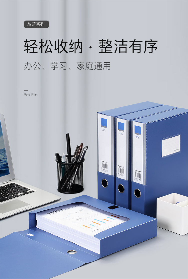 齐心 Comix 55mm加厚档案盒/A4文件盒/粘扣塑料资料盒 办公用品 灰蓝A1258