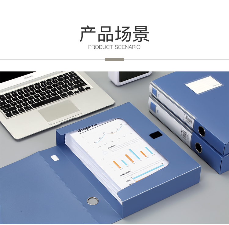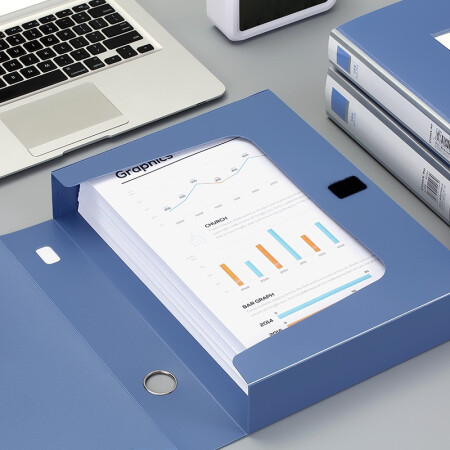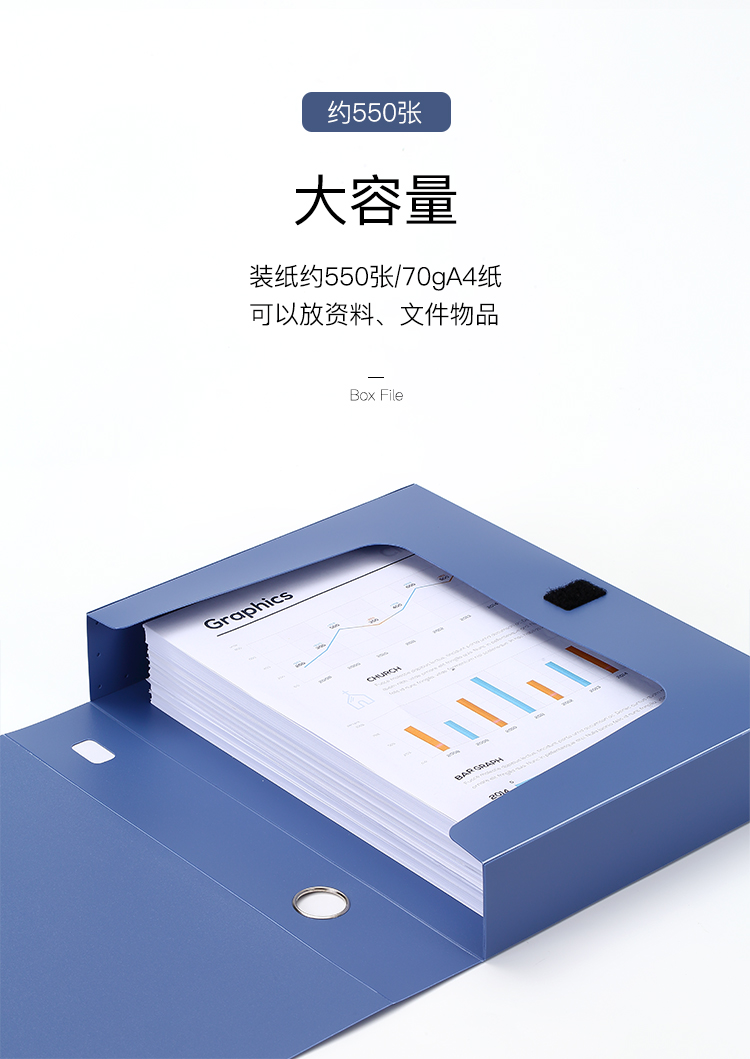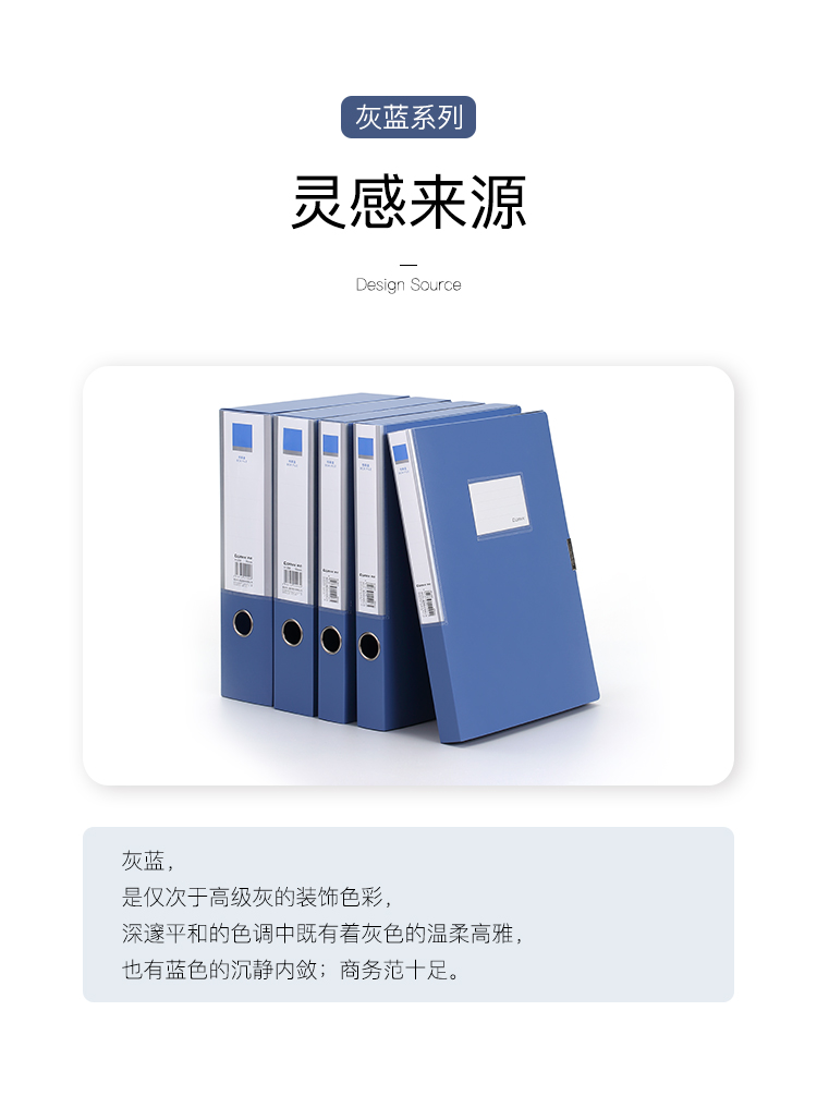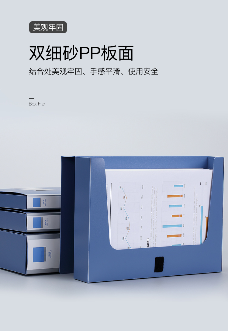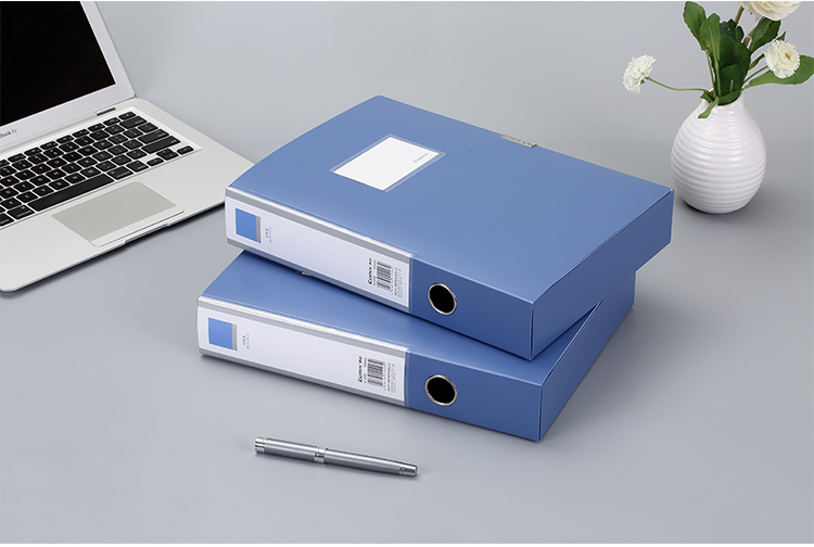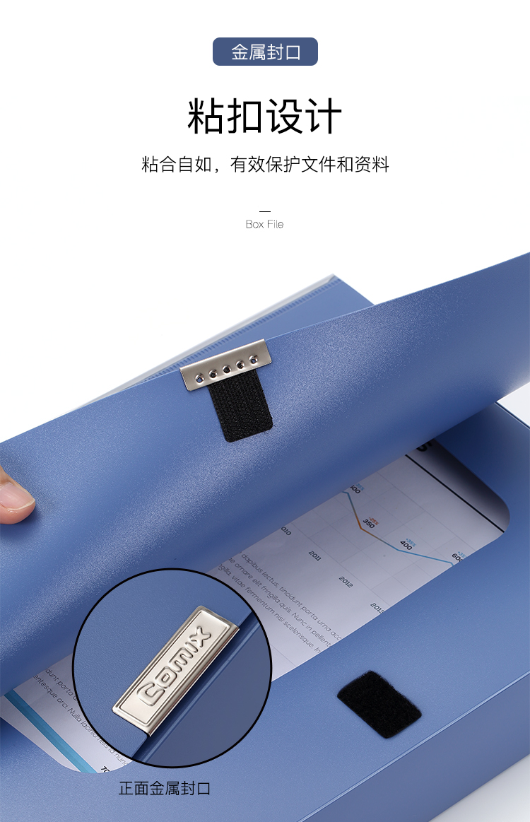 齐心 Comix 55mm加厚档案盒/A4文件盒/粘扣塑料资料盒 办公用品 灰蓝A1258