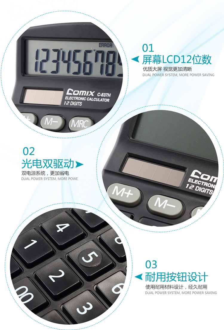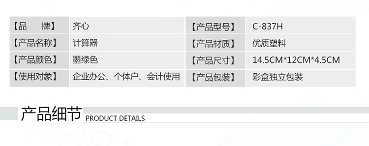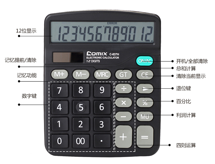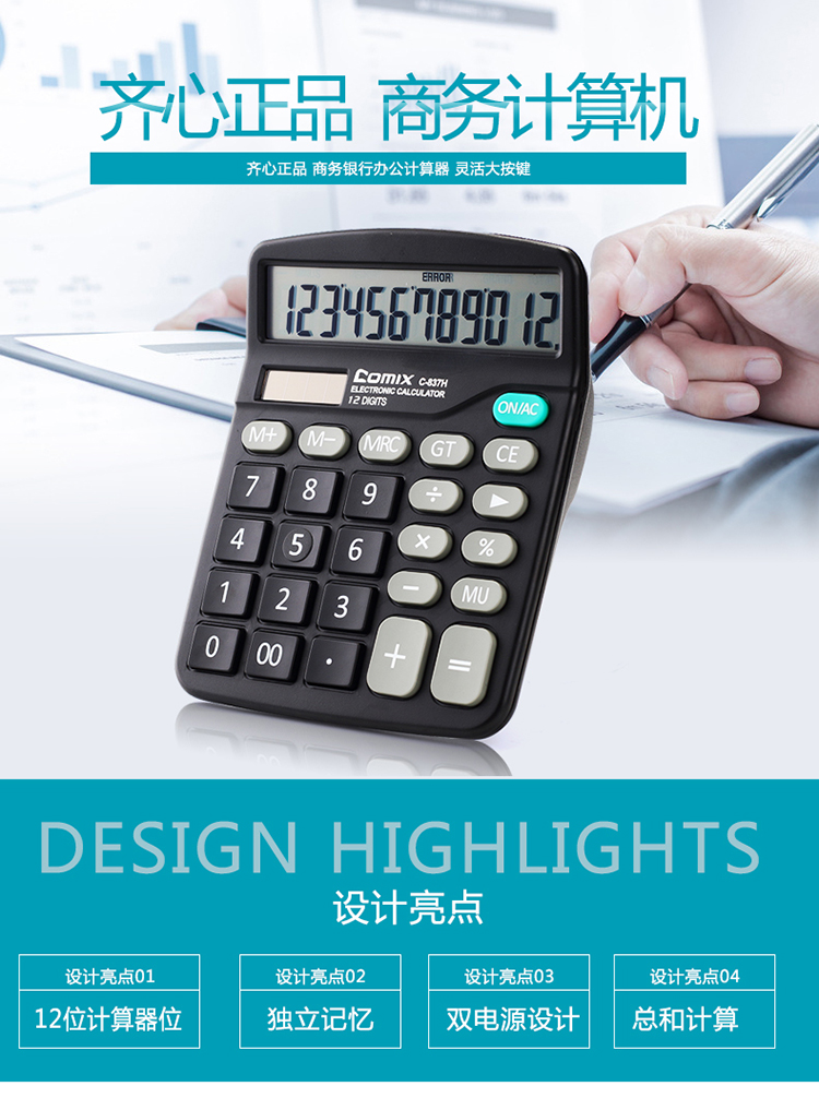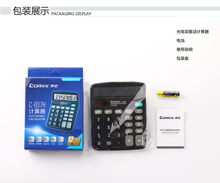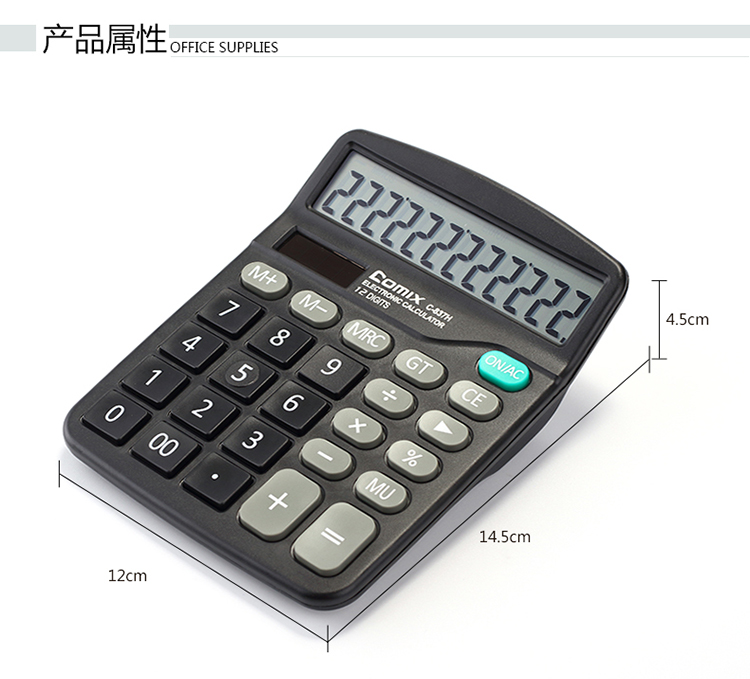 齐心 Comix 12位中台办公经典计算器 黑色 新老包装随机发货 办公文具 C-837H
