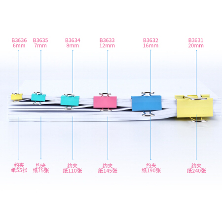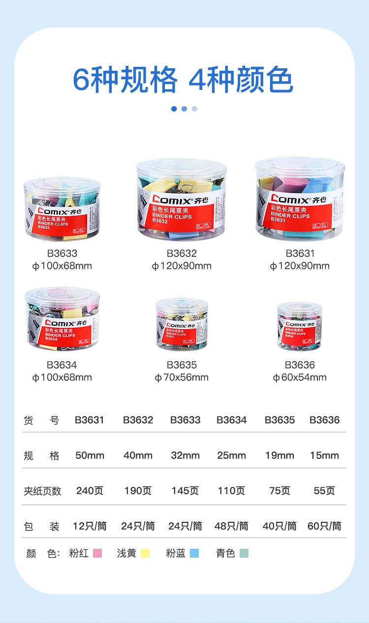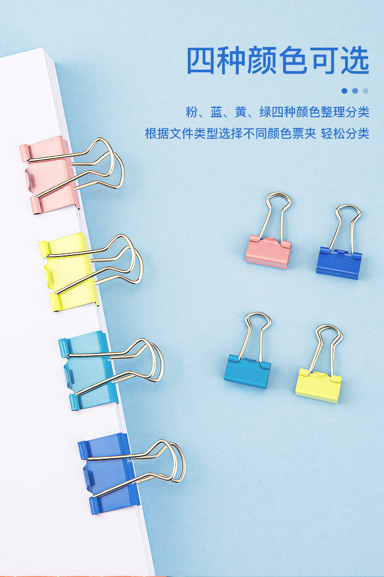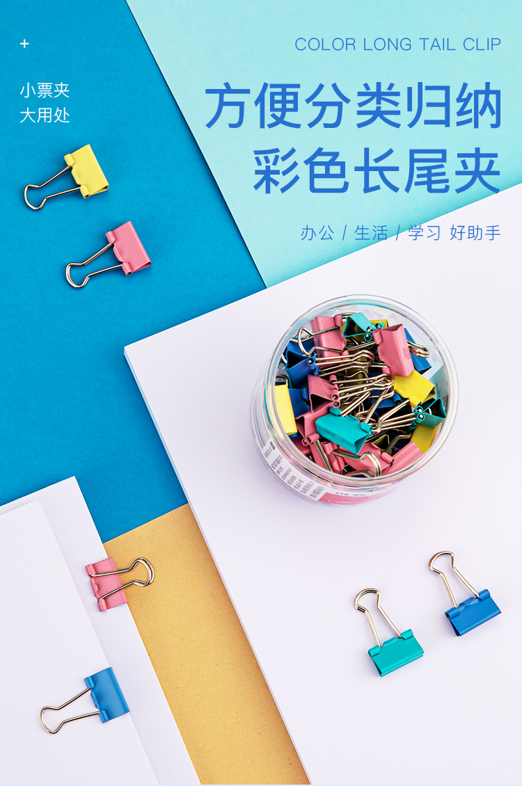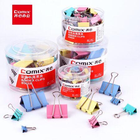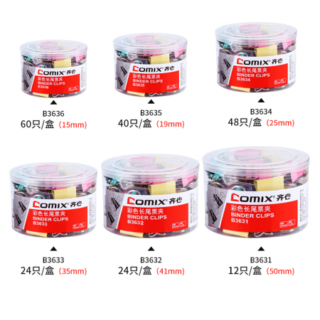 齐心 Comix 长尾夹/燕尾夹/票夹 彩色金属 2#41mm 24只/筒 办公用品 工具 B3632