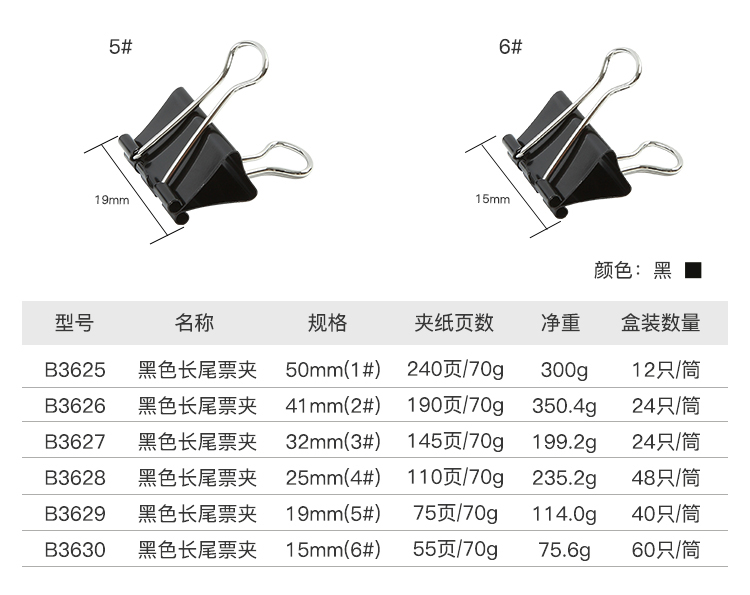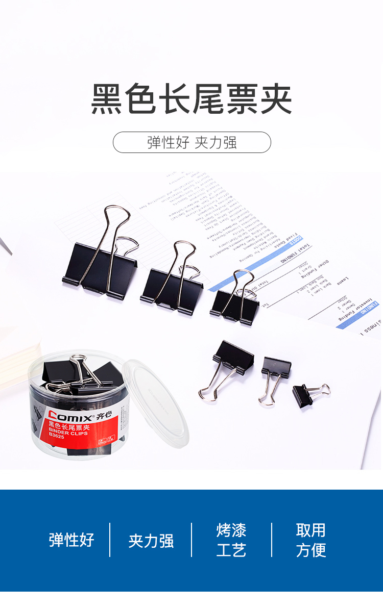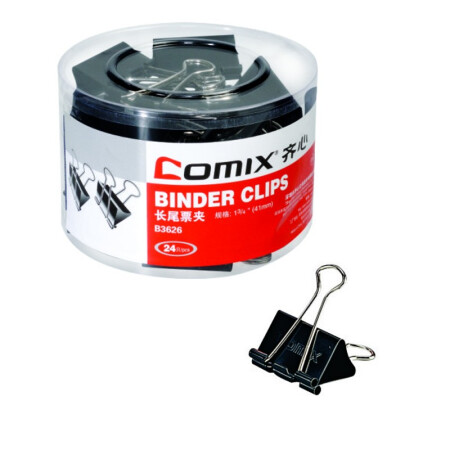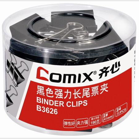 齐心 Comix 长尾夹/燕尾夹/票夹 黑色金属 2#41mm 24只/筒 办公用品工具B3626