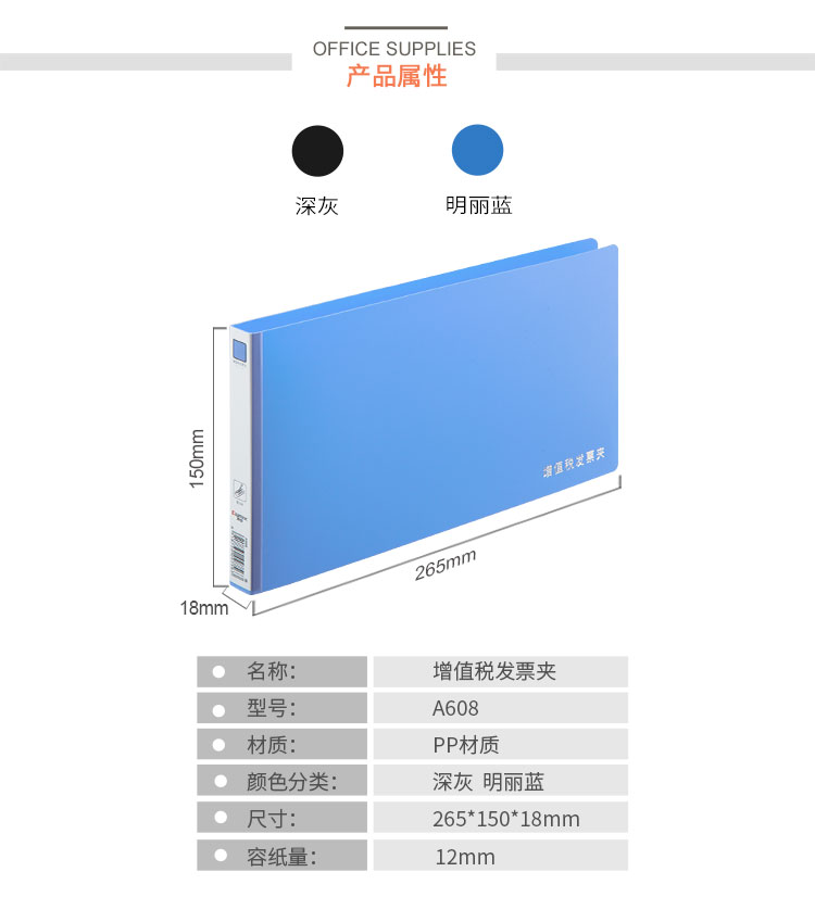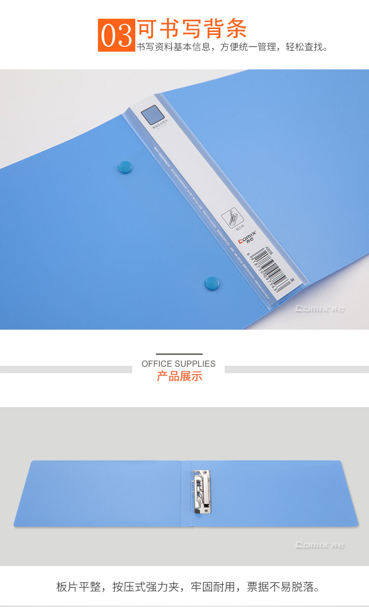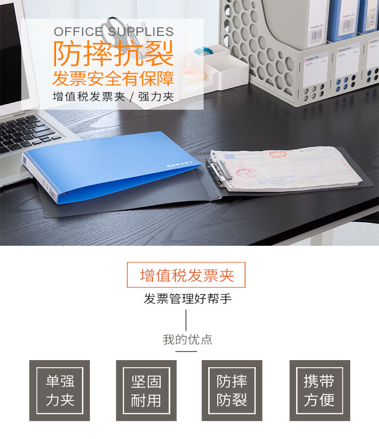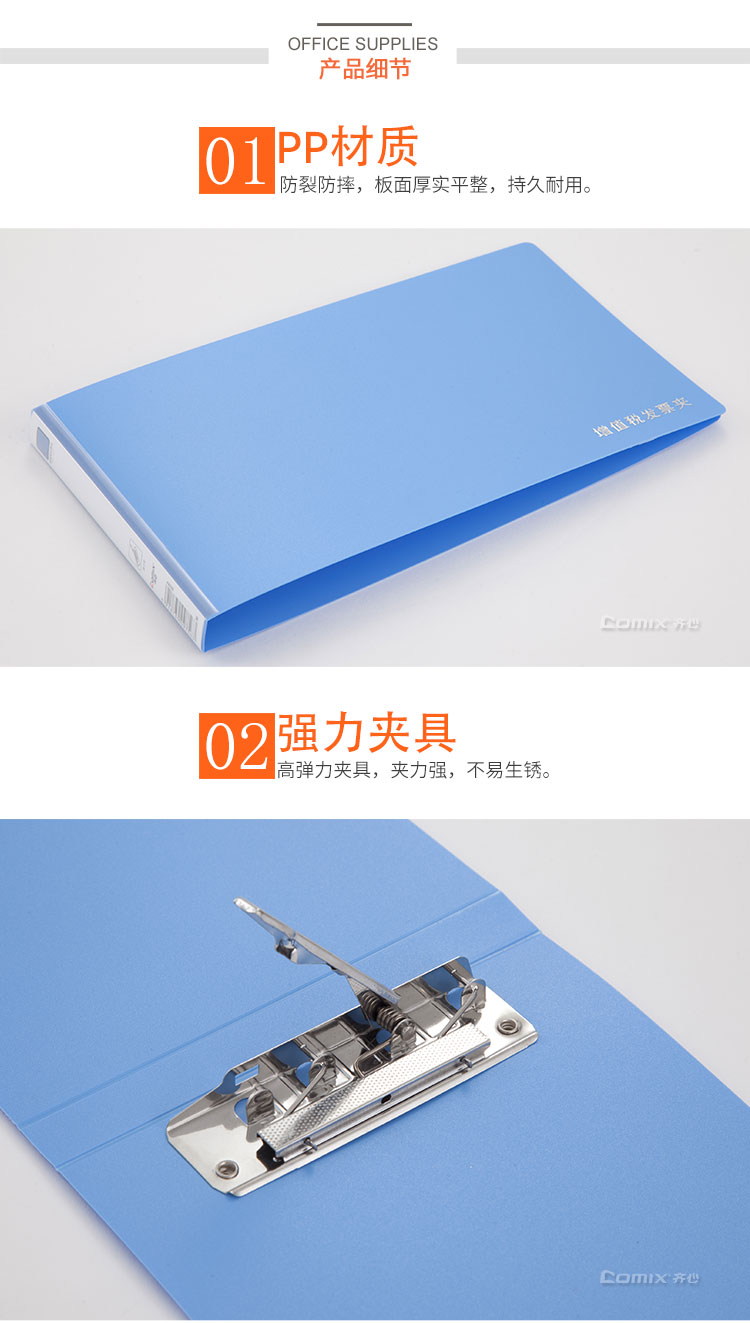 齐心 COMIX 增值税专用发票收纳夹 财务票据存储夹子 金属夹具资料文件夹板 A608 蓝