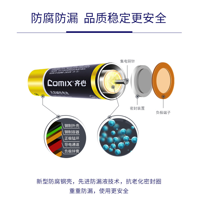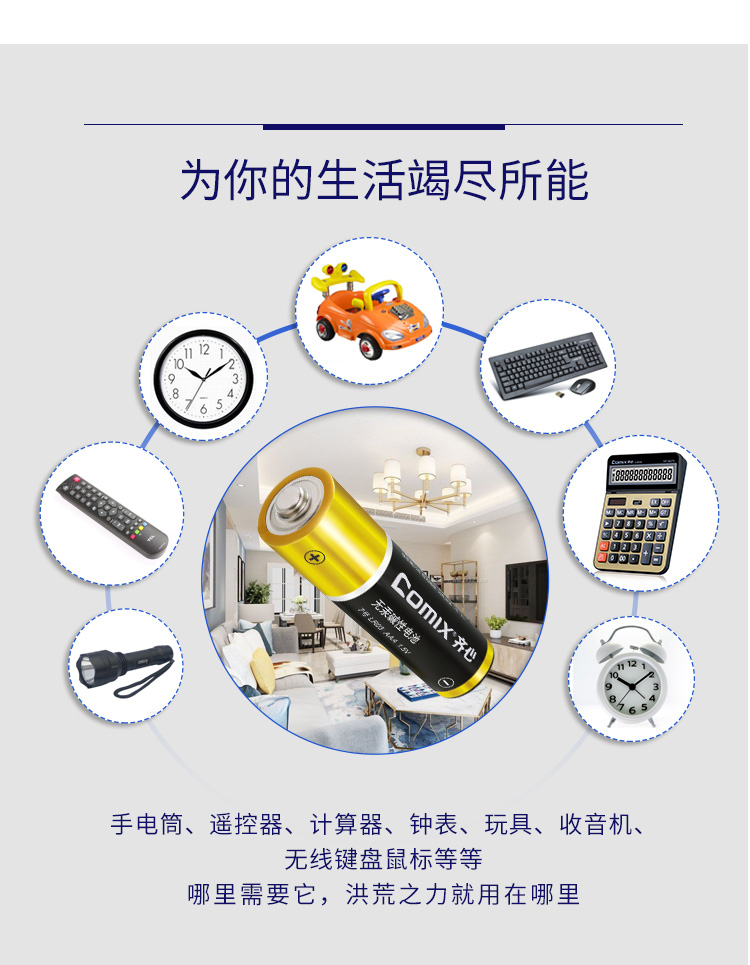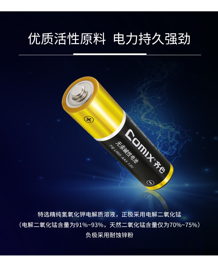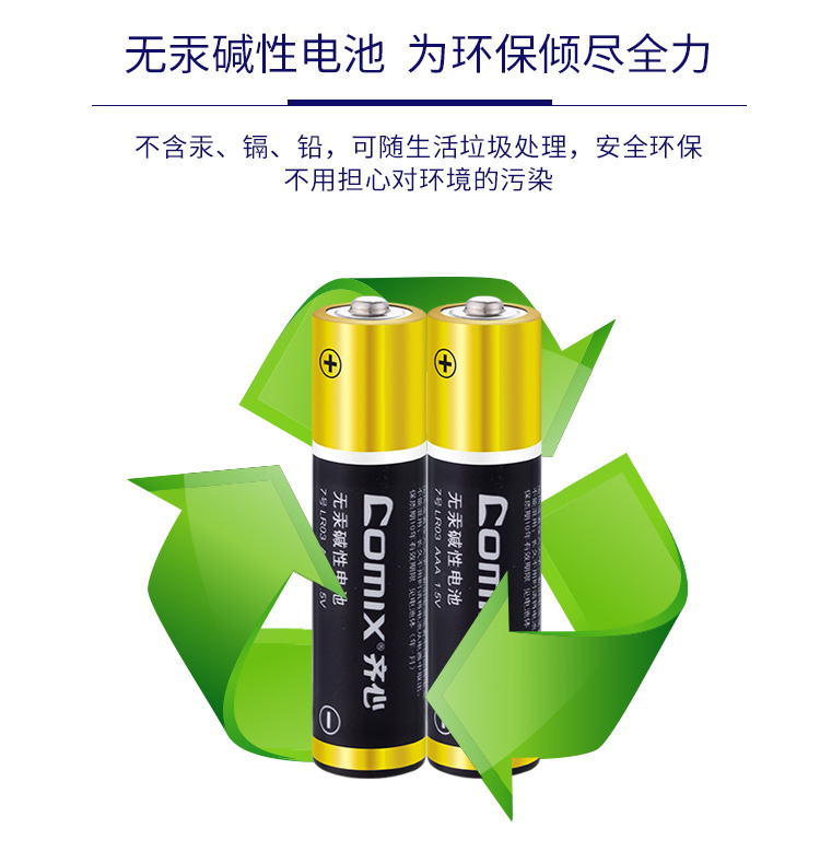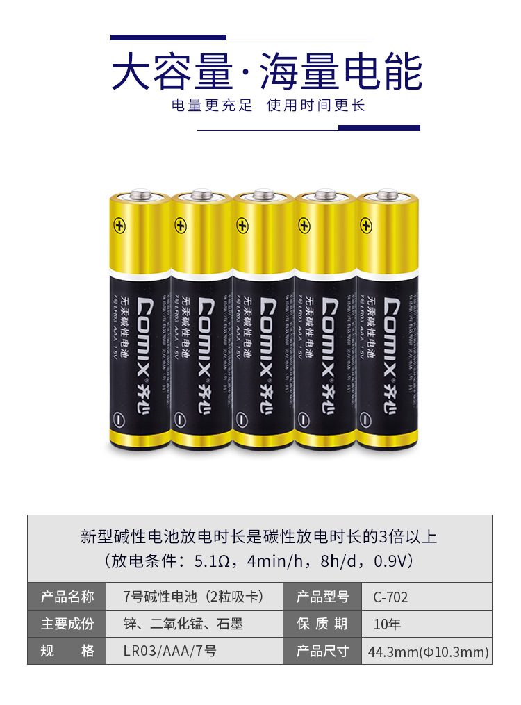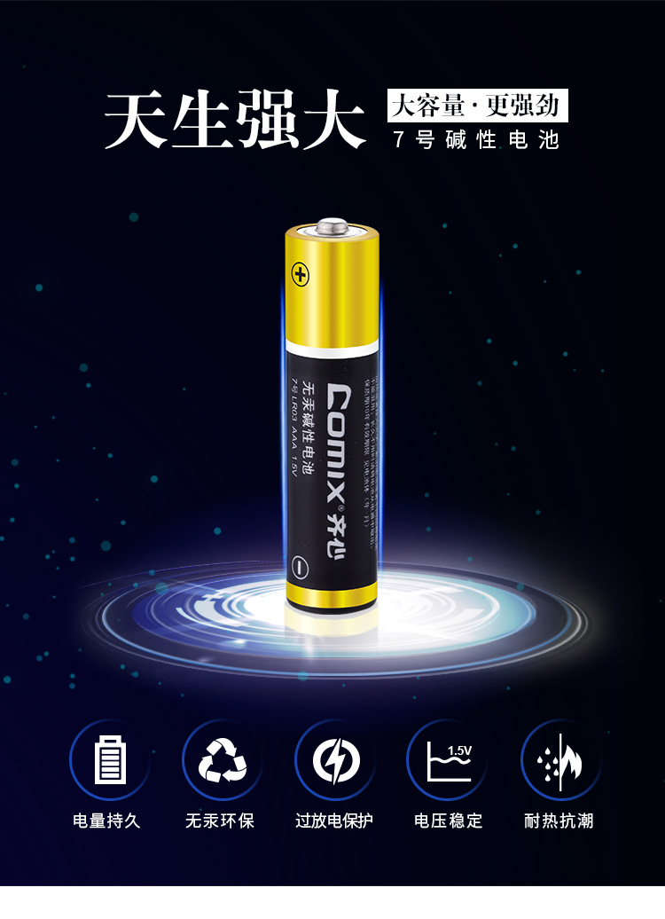 齐心 Comix 5号/7号 2粒/4粒装 安全碱性电池办公文具 家庭电器用品 7号 4粒装-C-704