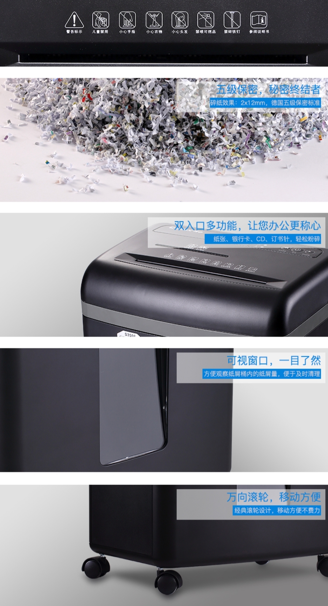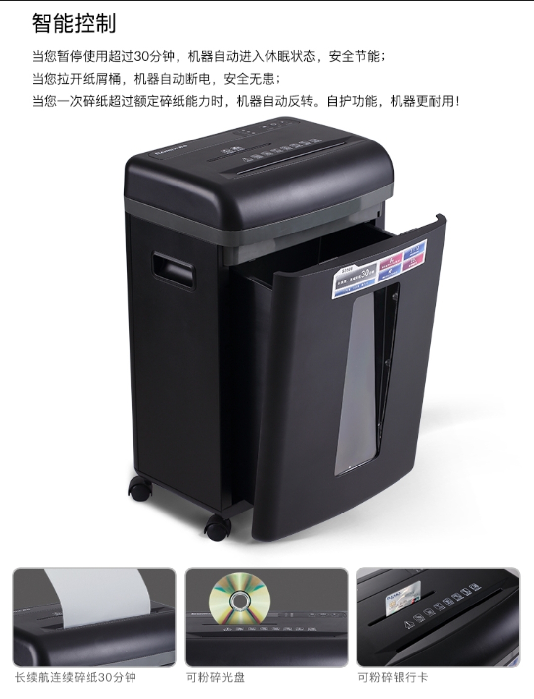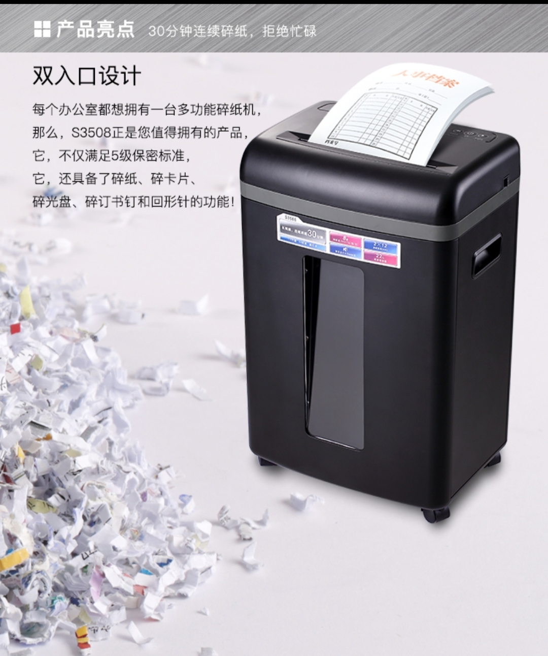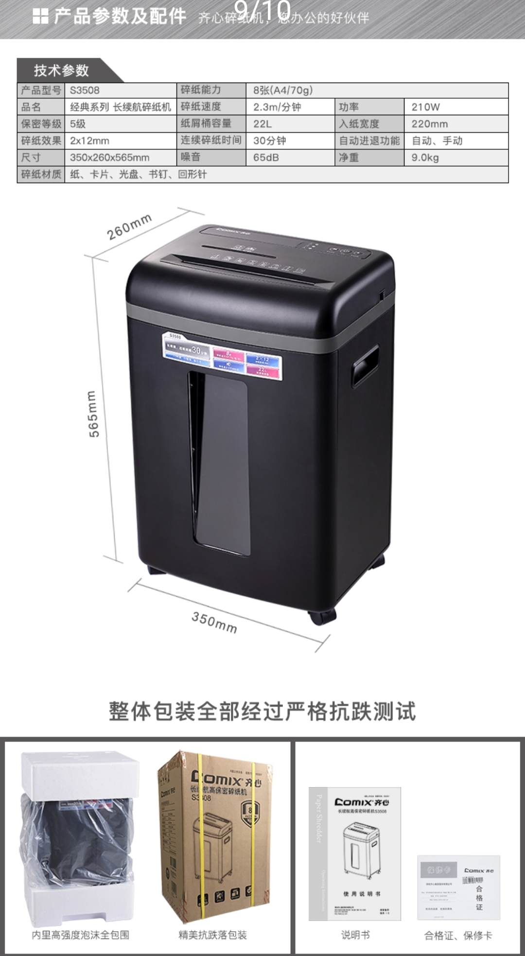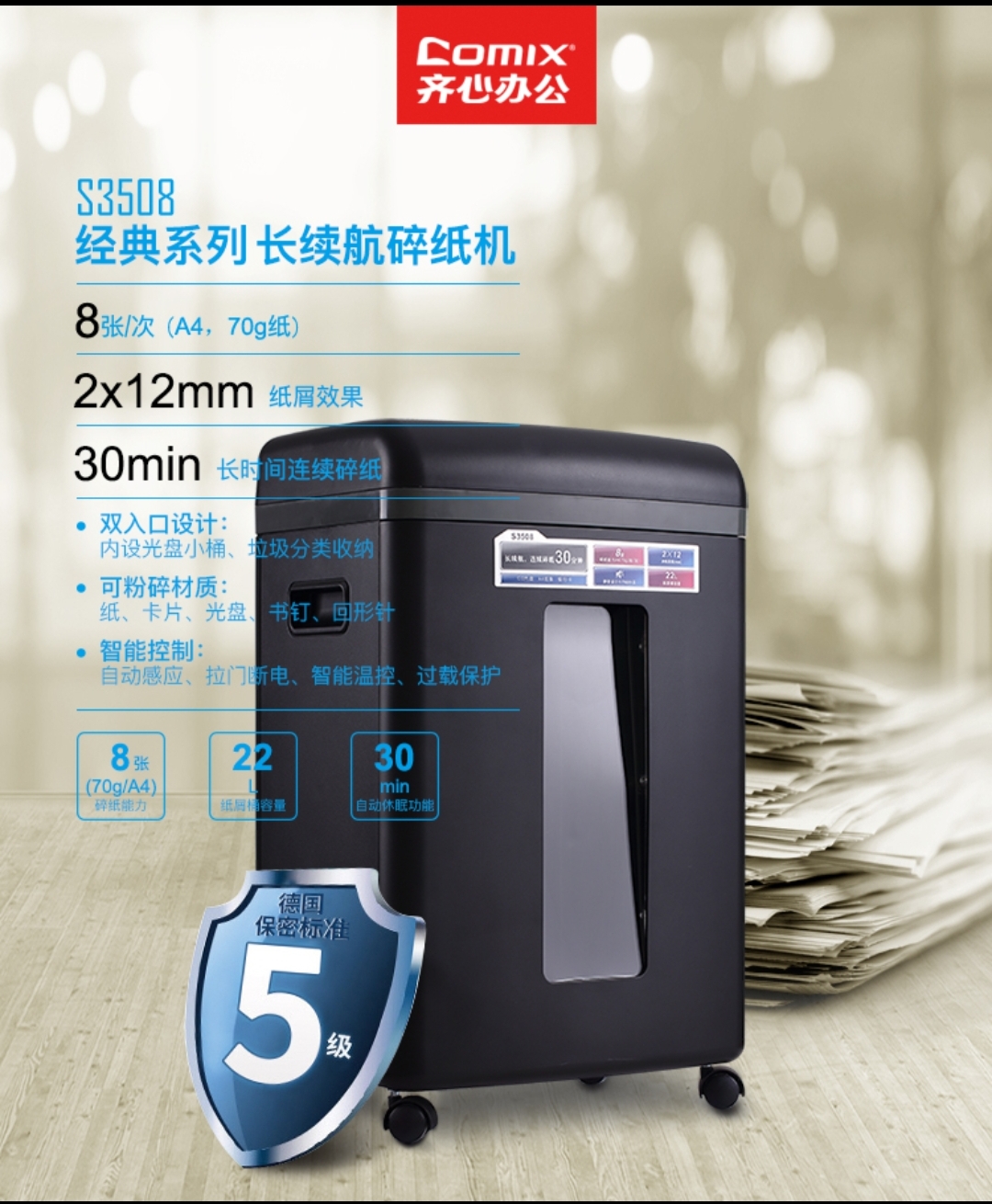 齐心 S3508 碎纸机 8张 5级保密 22L 黑