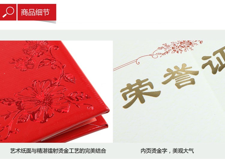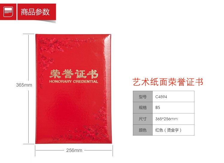 齐心 Comix 纸面荣誉证书 纸面花纹荣誉证书 8K/12K 奖状大红色 办公文具 C4594 荣誉证书 纸面 8K 红