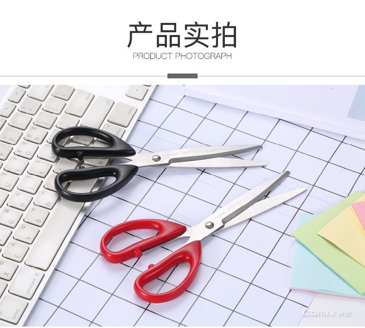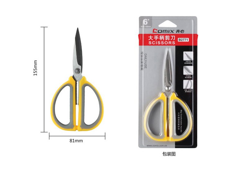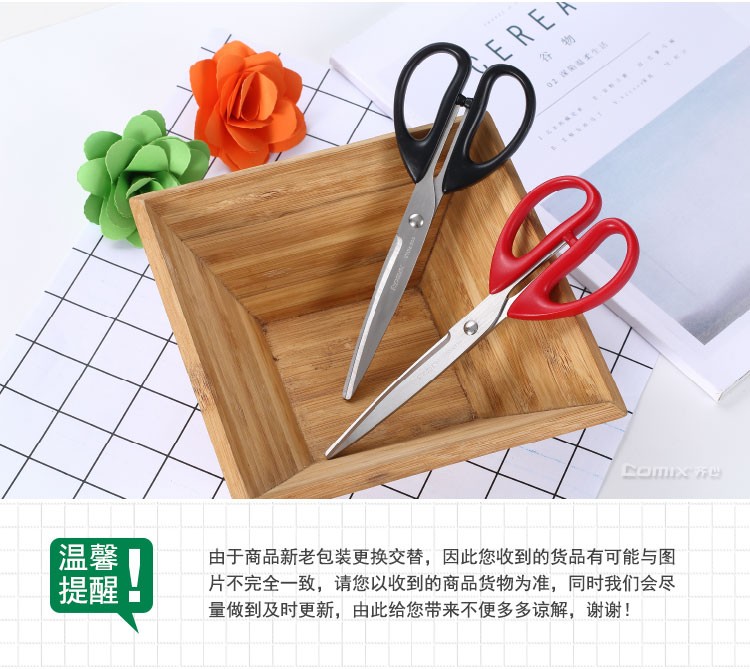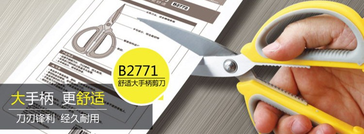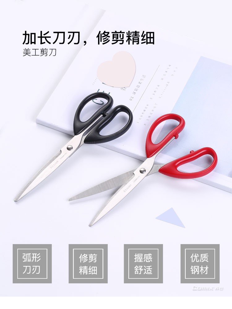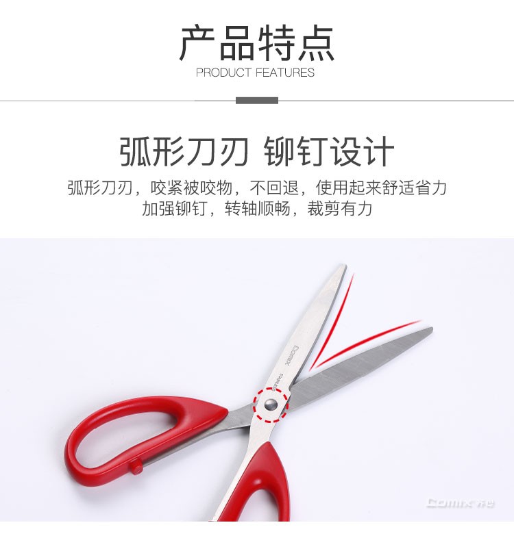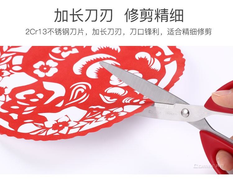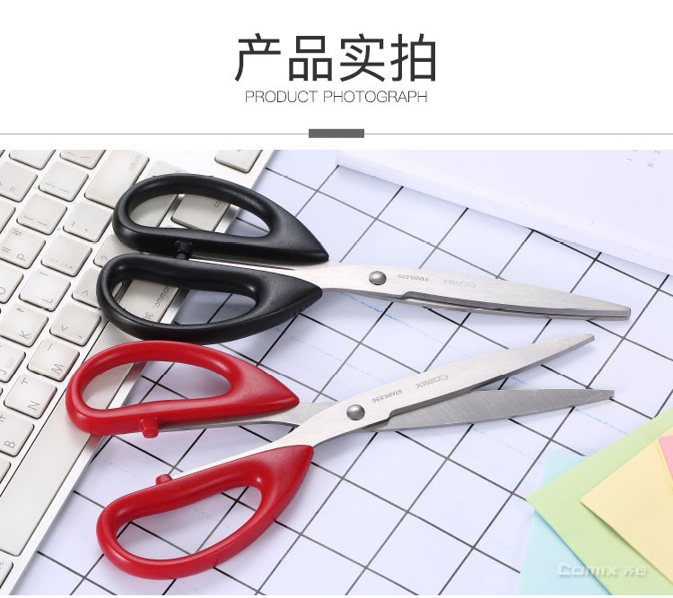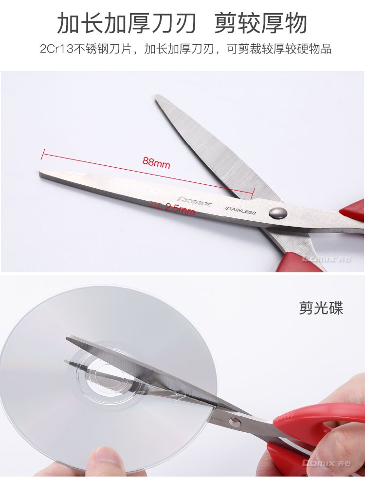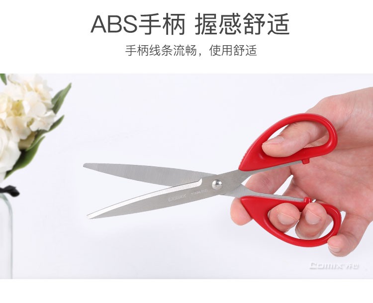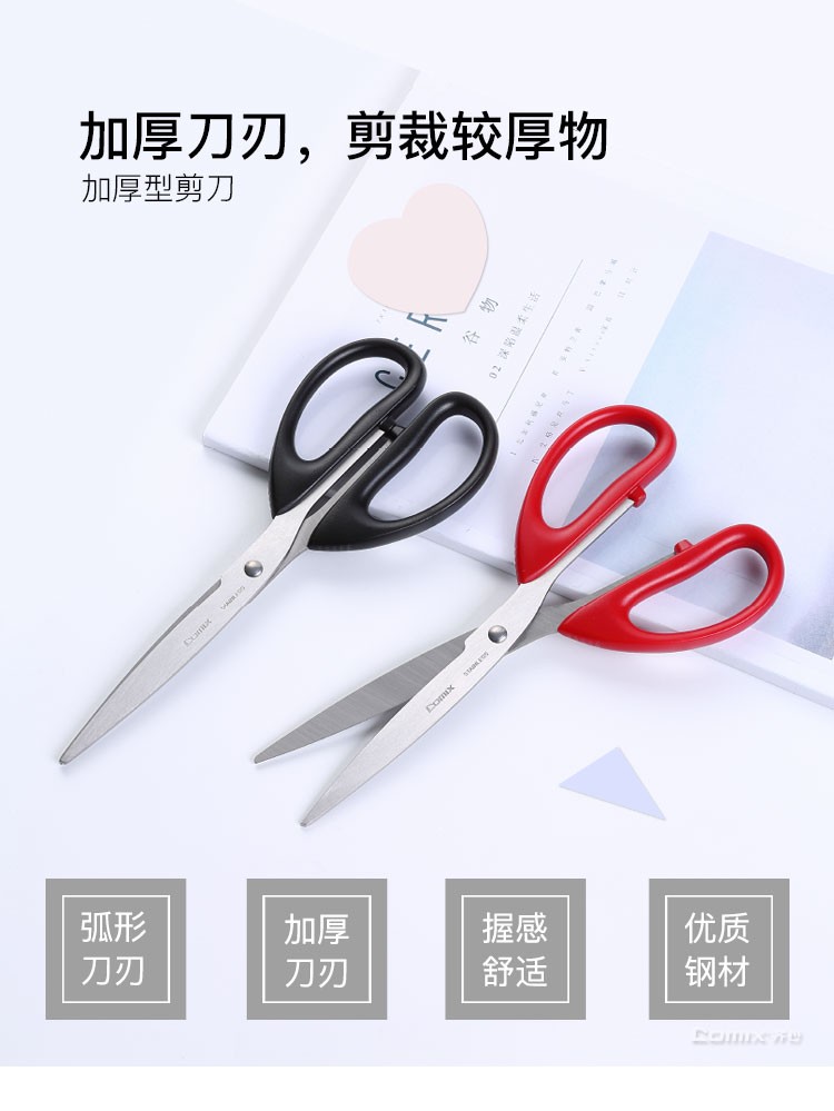 齐心(Comix)办公家用生活剪刀 省力办公型剪刀不锈钢家用裁剪文具加长型家用裁纸剪美工剪子 B2773 家用防锈强力剪刀