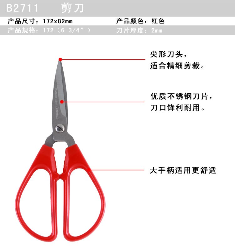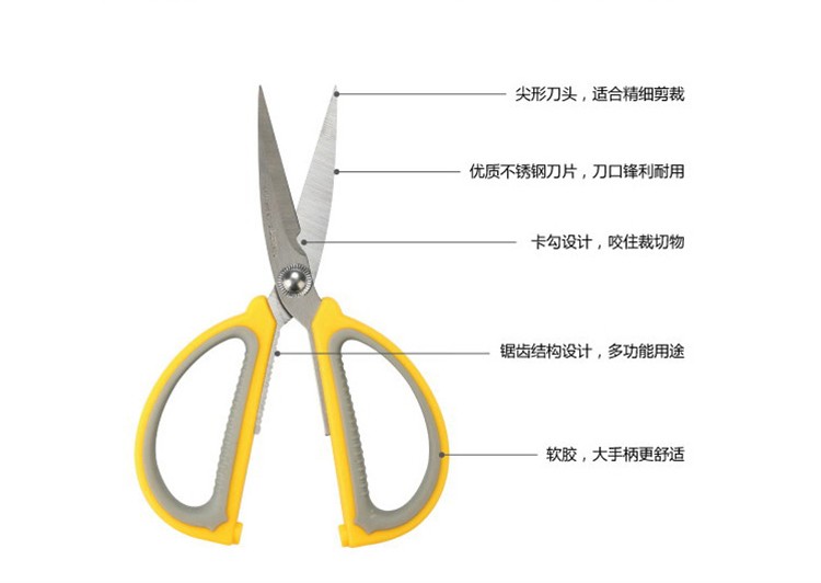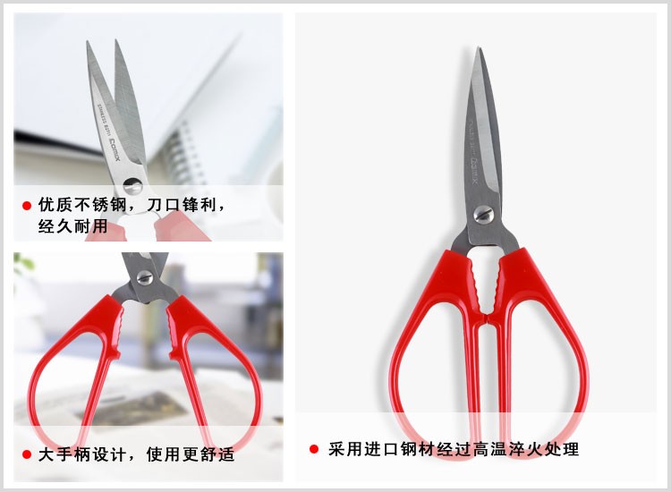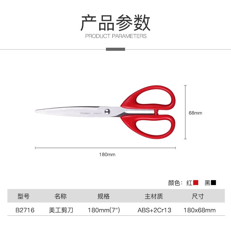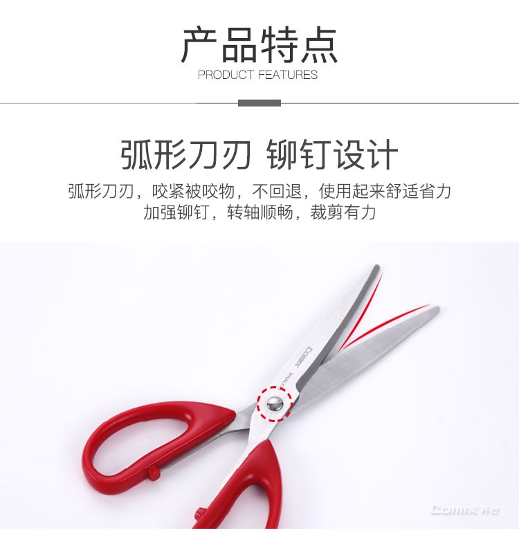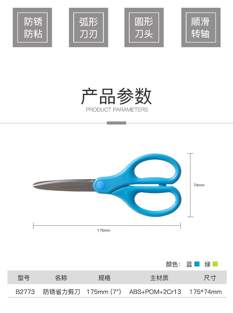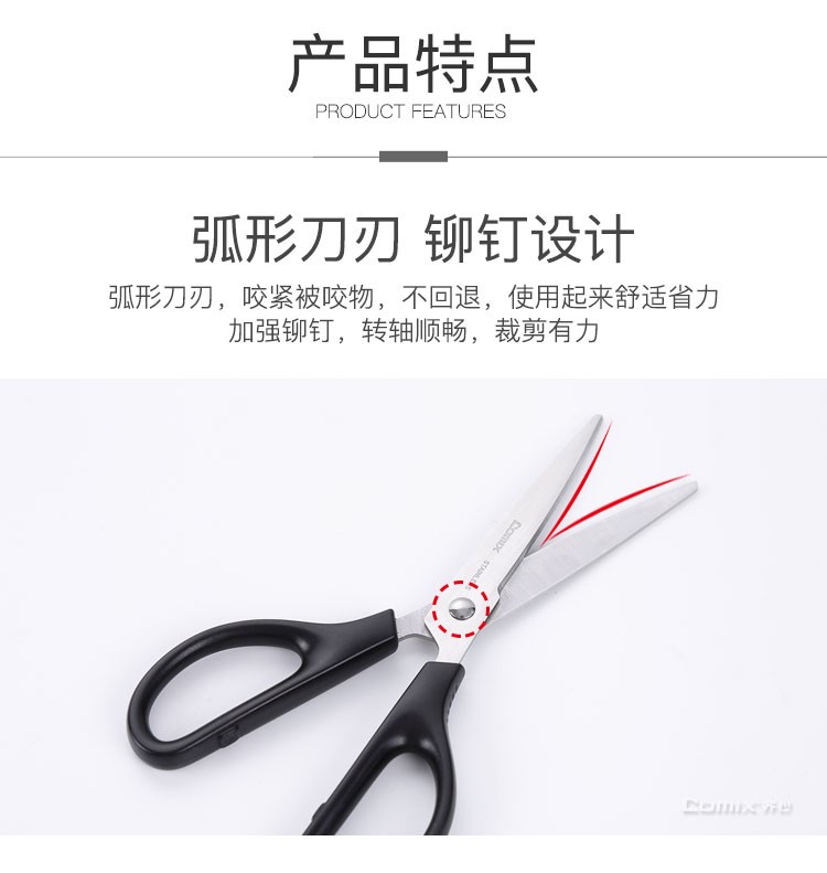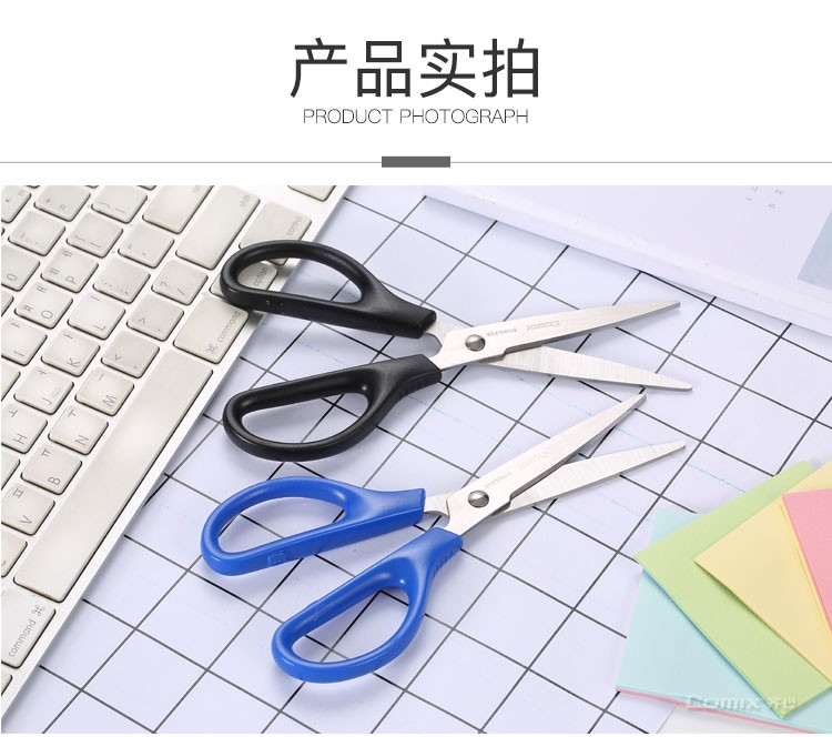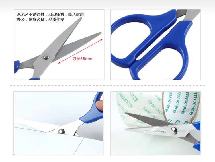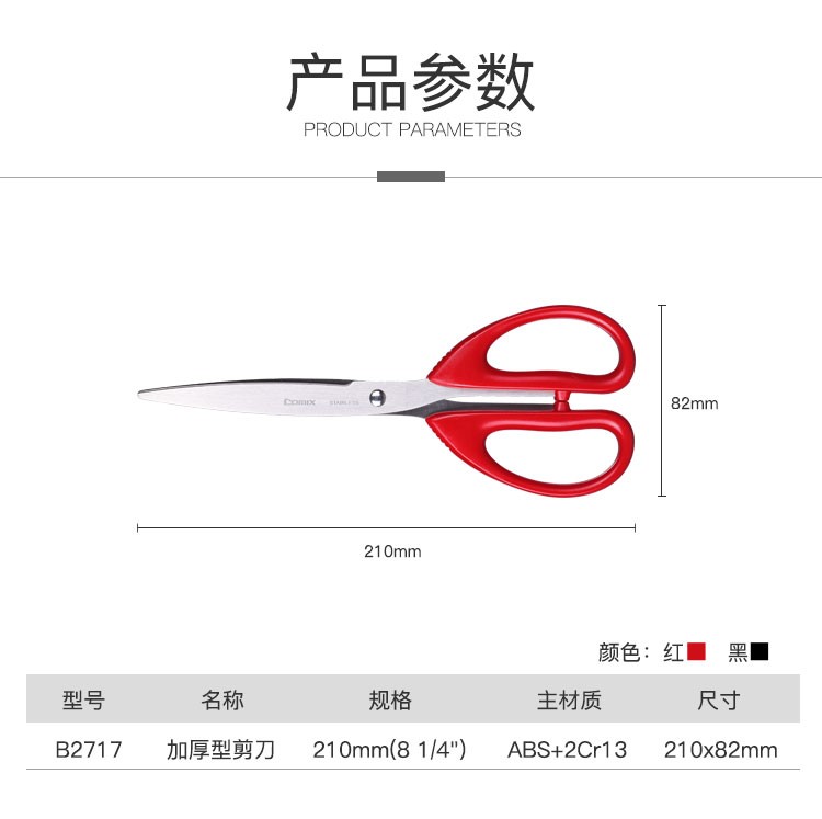 齐心(Comix)办公家用生活剪刀 省力办公型剪刀不锈钢家用裁剪文具加长型家用裁纸剪美工剪子 B2773 家用防锈强力剪刀