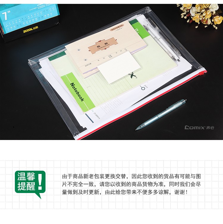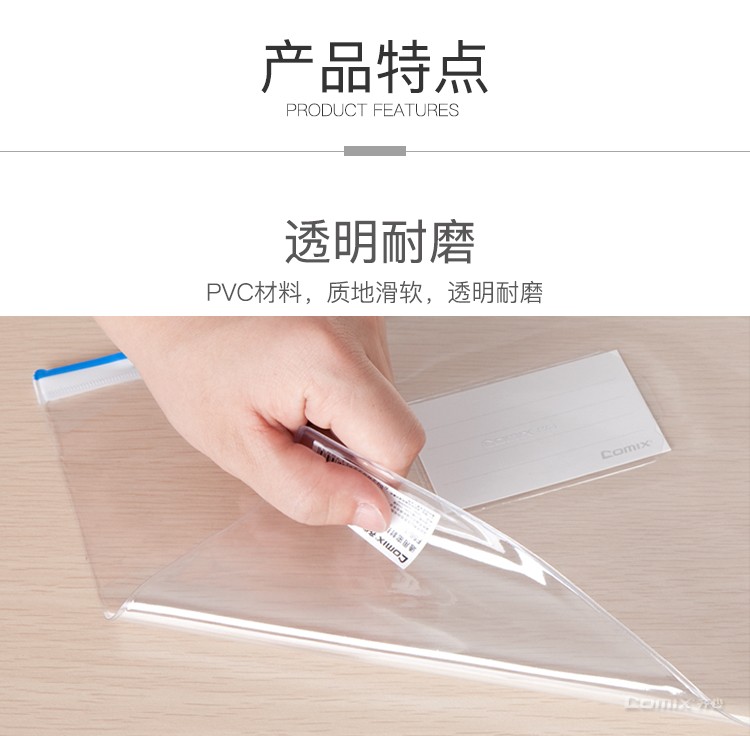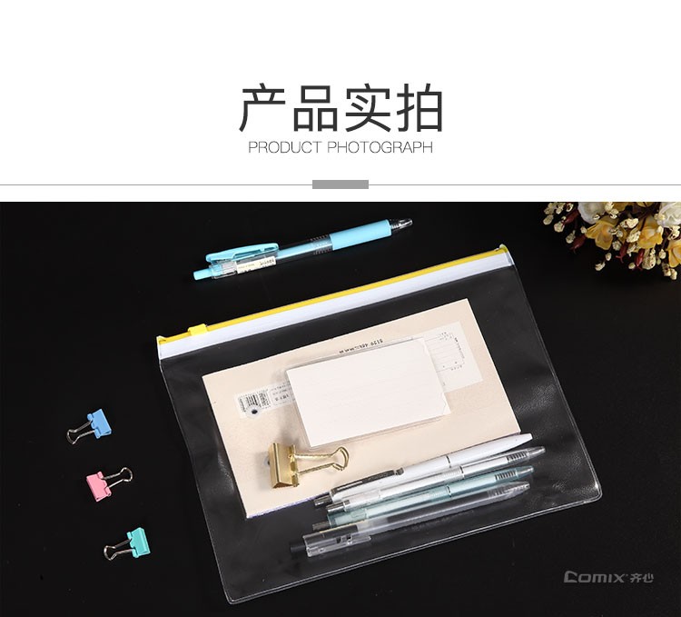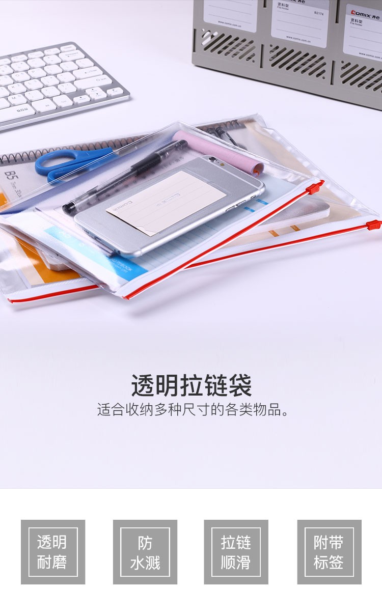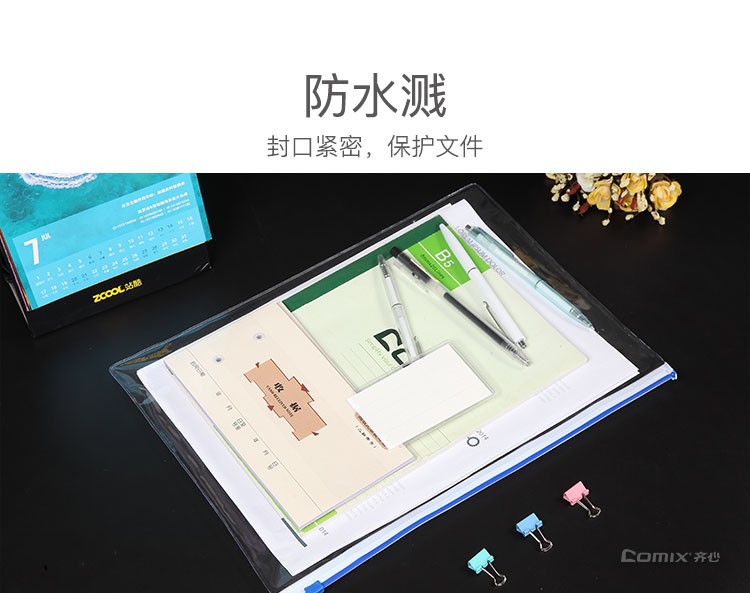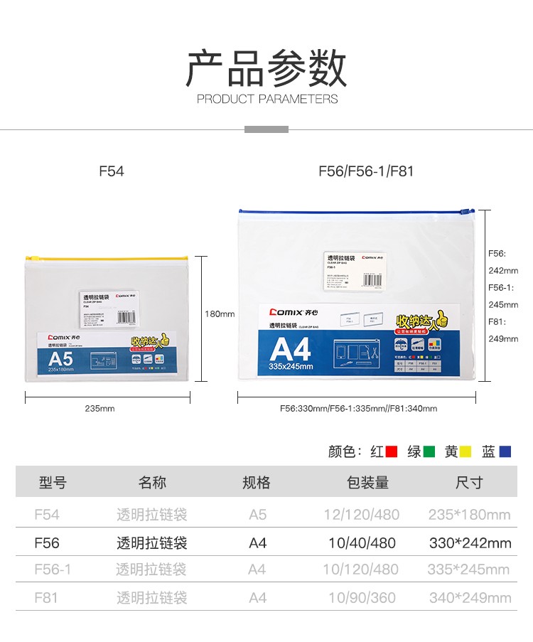 齐心 Comix F54/F56拉链袋密封防水档案袋A4/A5文件袋学生文具归类办公收纳袋5只装 F56 A4 拉链袋 五个装价