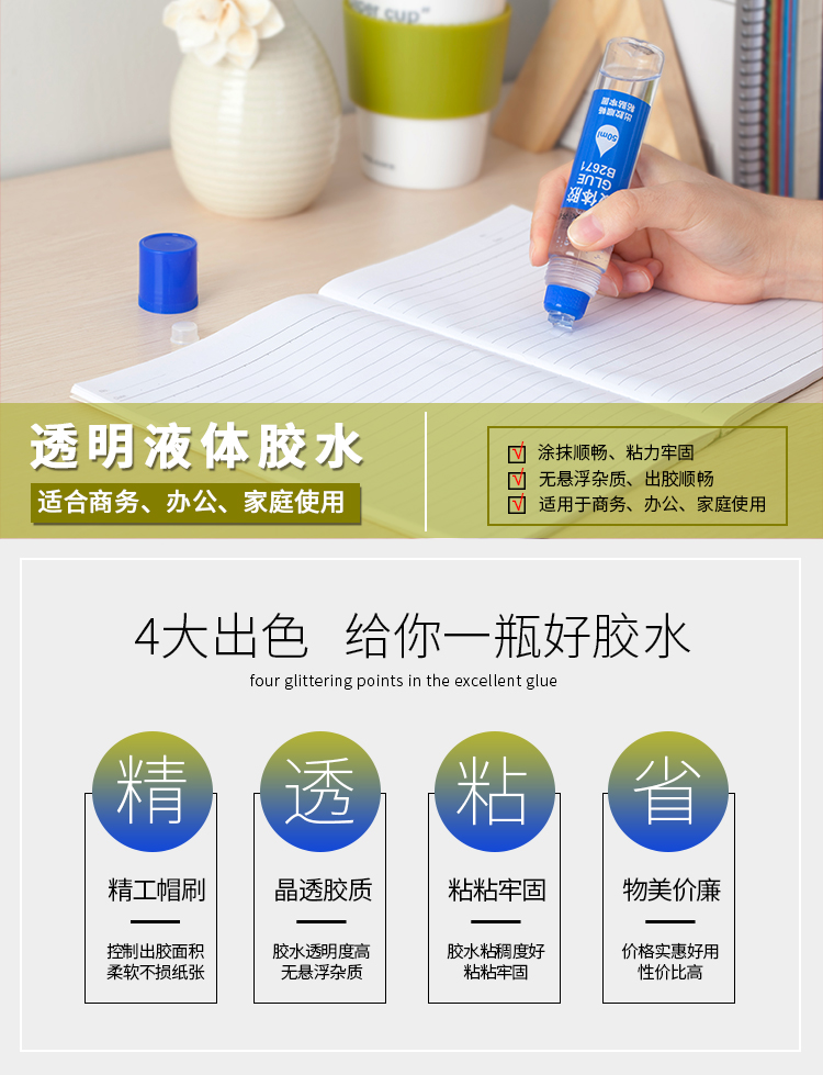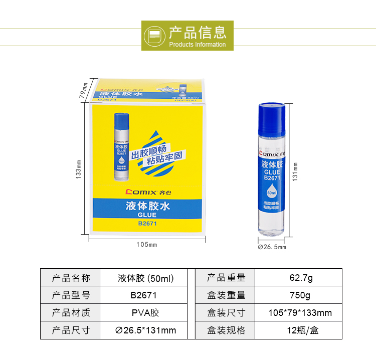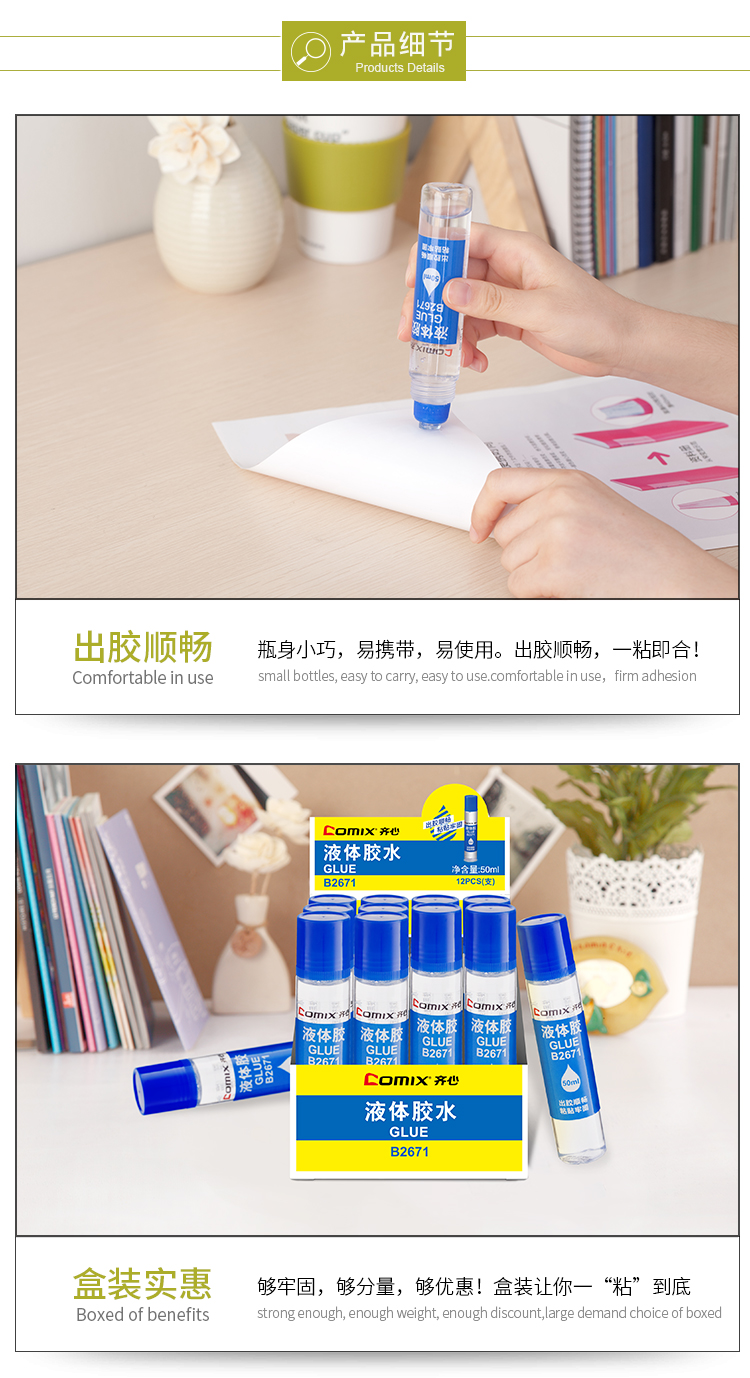 齐心 Comix 胶水 办公财务学生液体胶水 50ml/支 办公文具工具B2671