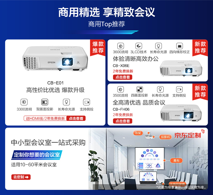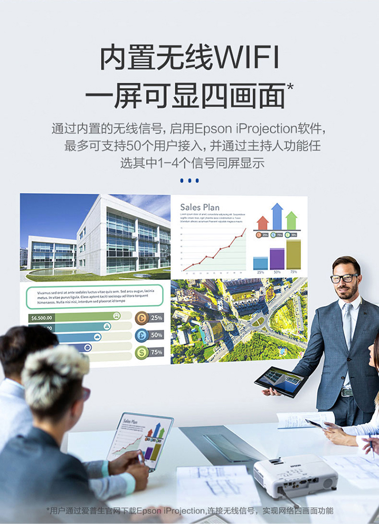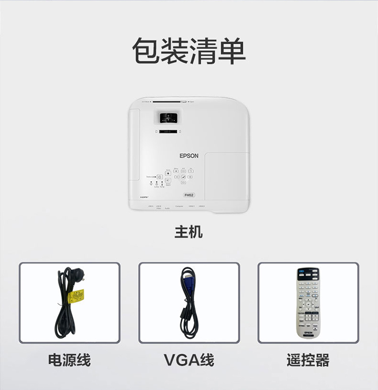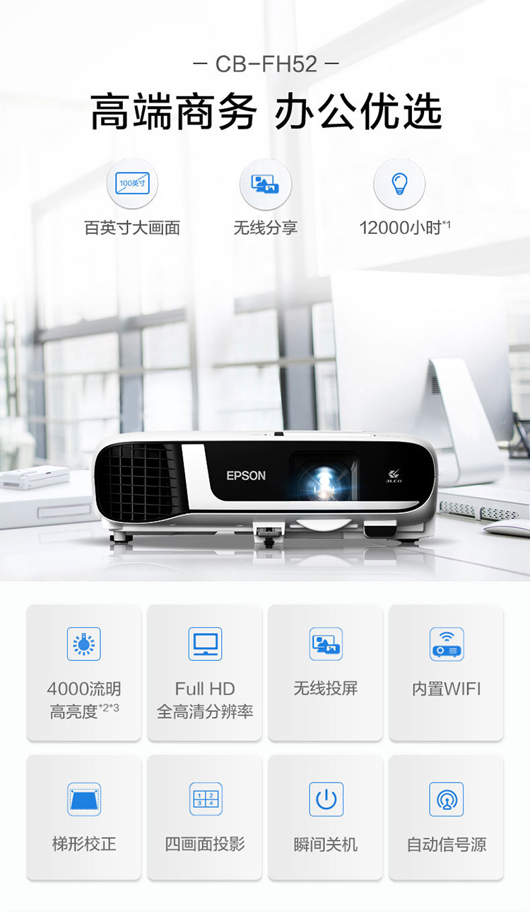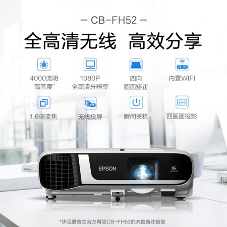 爱普生(EPSON)CB-FH52 投影仪 投影机办公 培训(1080P全高清 4000流明 手机同屏 1.6倍变焦)