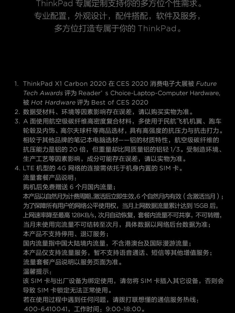联想ThinkPad X1 Carbon 2020英特尔酷睿i5 14英寸轻薄笔记本电脑 i5-10210U 8GB 512G(36CD) FHD 背光键盘 Win10 office