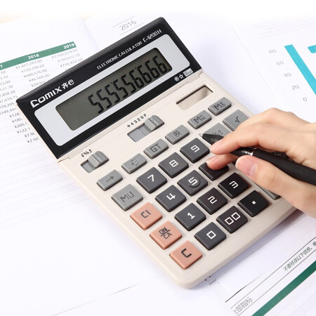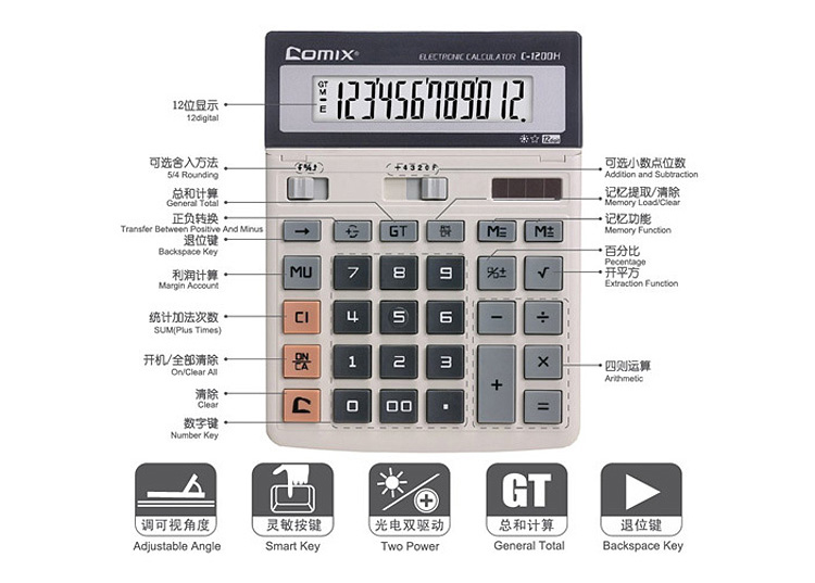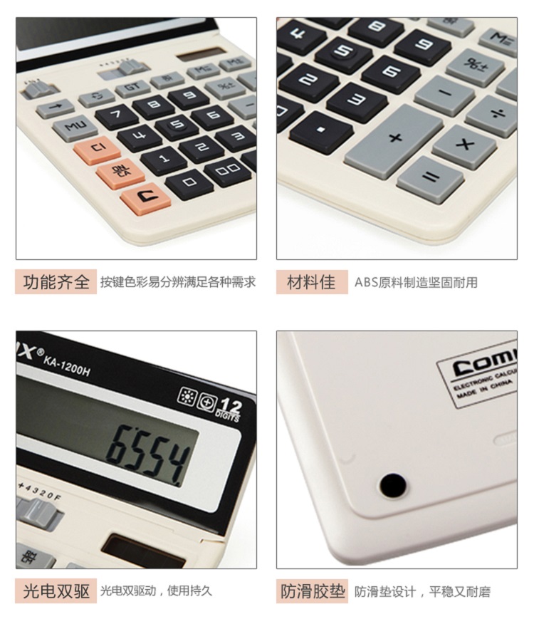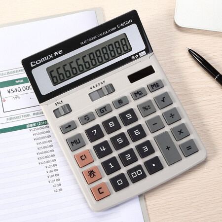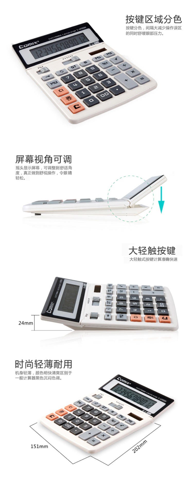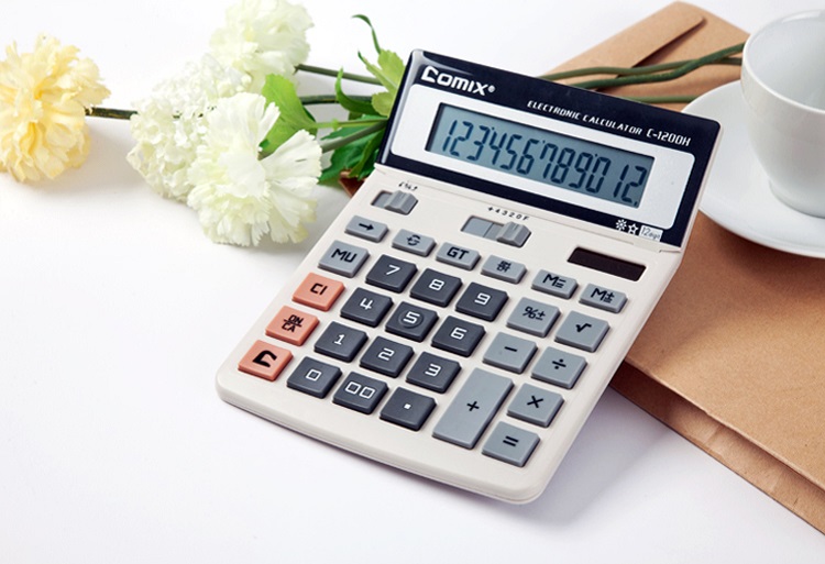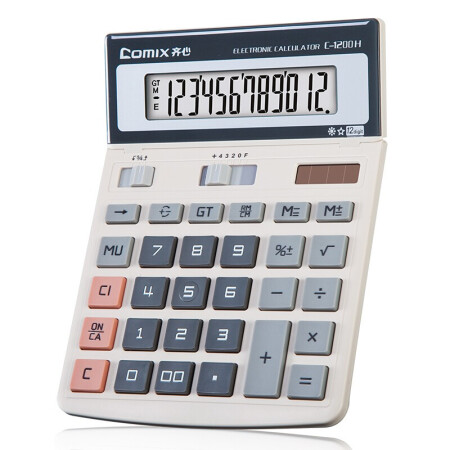 齐心(COMIX)C-1200H 12位大台舒视办公计算器 办公文具 2个 灰白色 BJFL