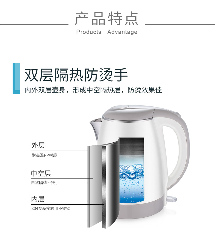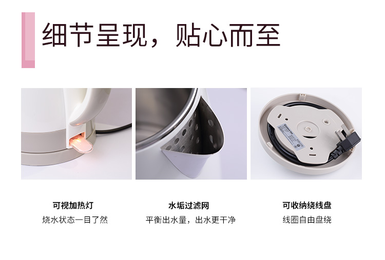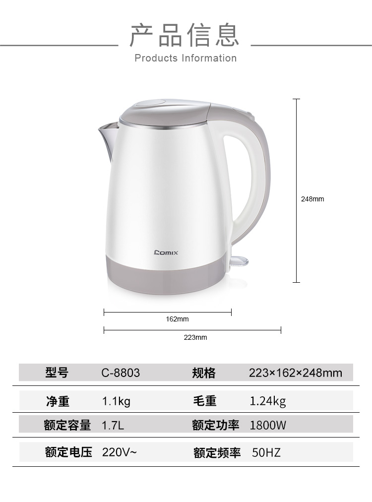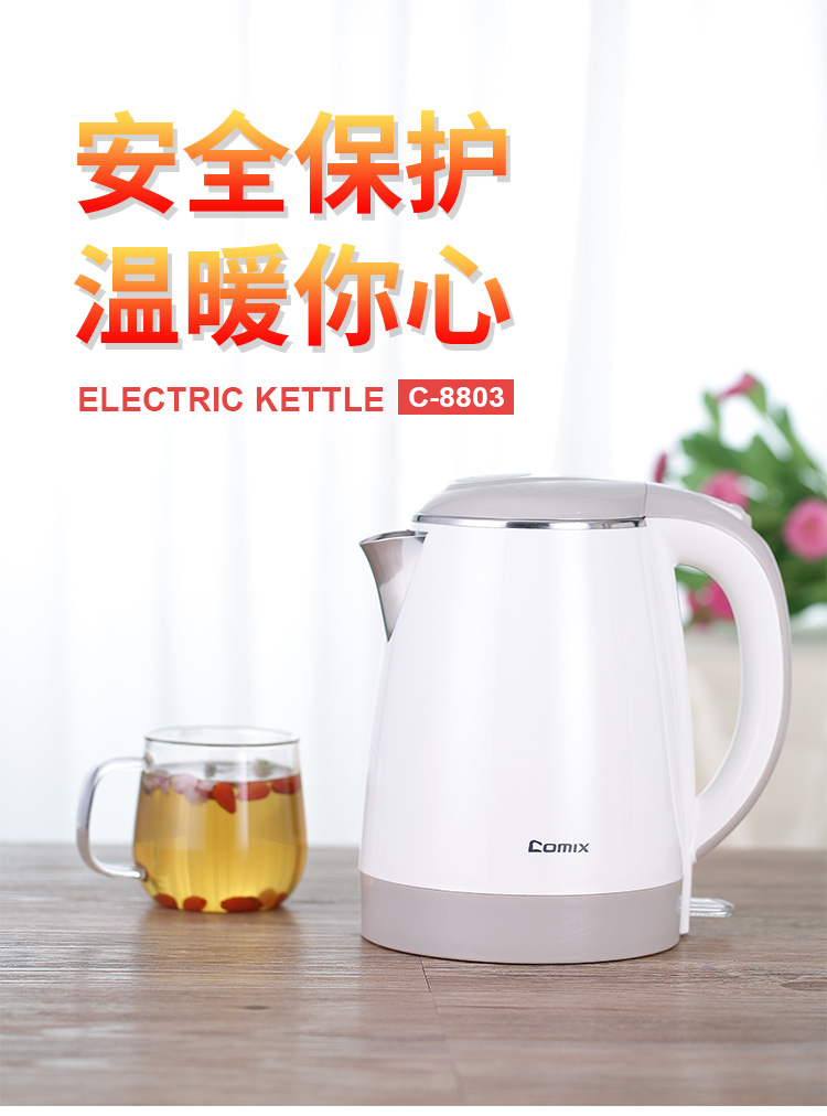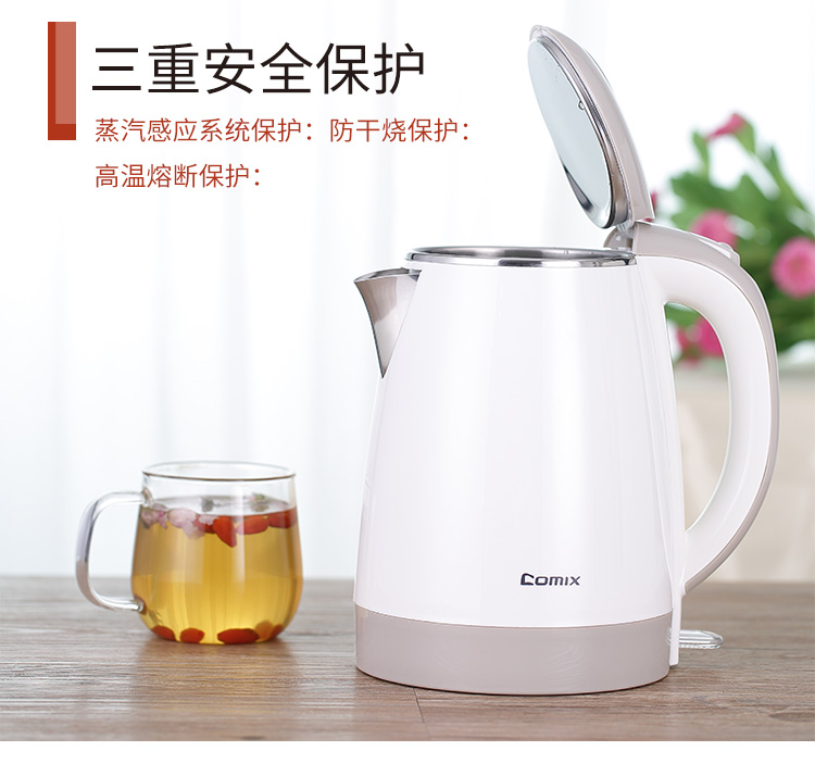 齐心/COMIX 烧水壶 C-8803 电热水壶家用开水壶不锈钢 自动断电加热壶 1.7L 图片色