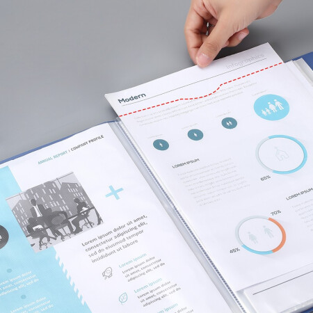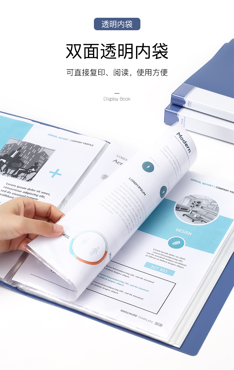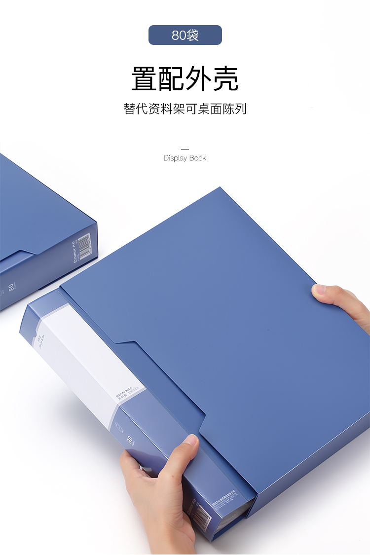 齐心 Comix A4/40页资料册/插袋文件册 /活页文件夹/文件收纳袋 办公文具 灰蓝A3774