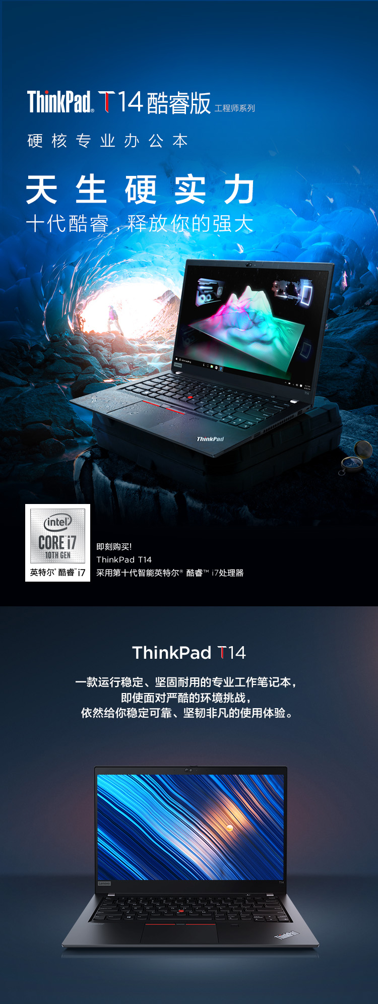 联想ThinkPad T14 酷睿版 英特尔酷睿i7 2020款 4JCD 14英寸轻薄笔记本电脑 i7-10510U 8G 512G 2G独显