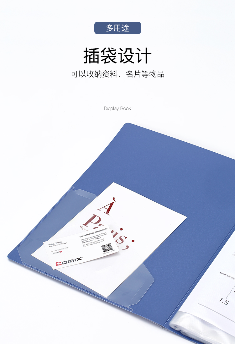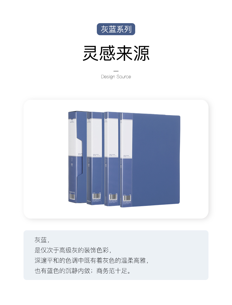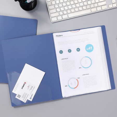 齐心 Comix A4/40页资料册/插袋文件册/活页文件夹/文件收纳袋 办公文具 灰蓝A3774