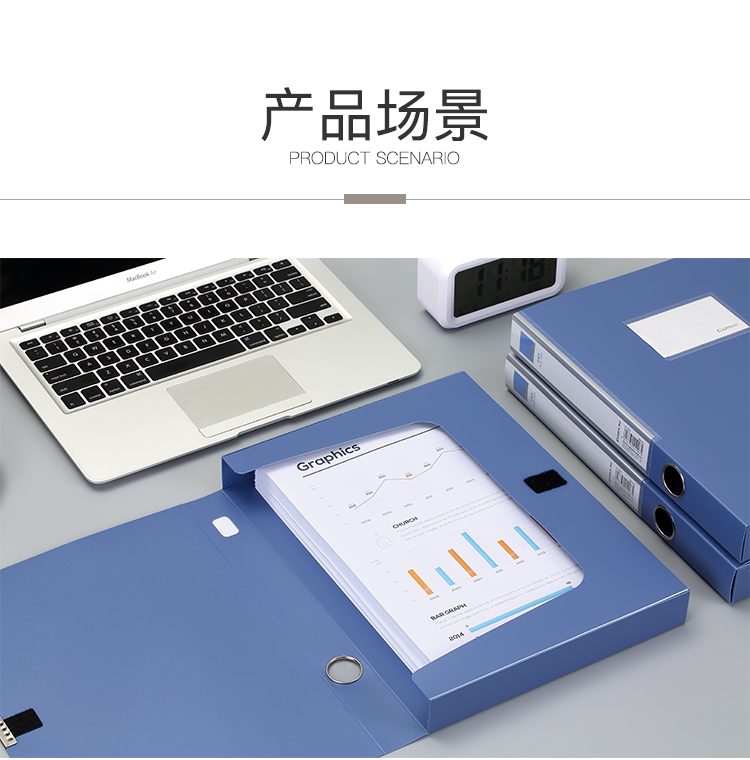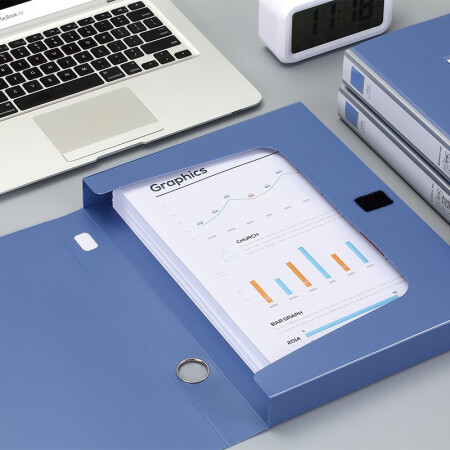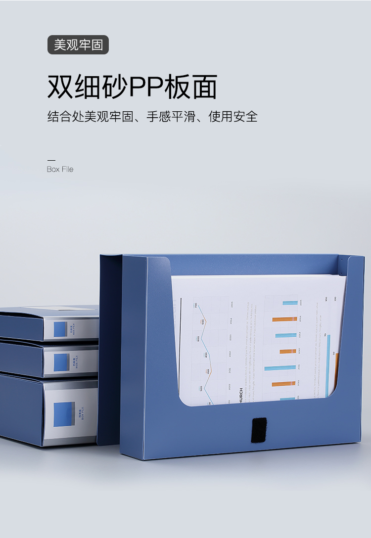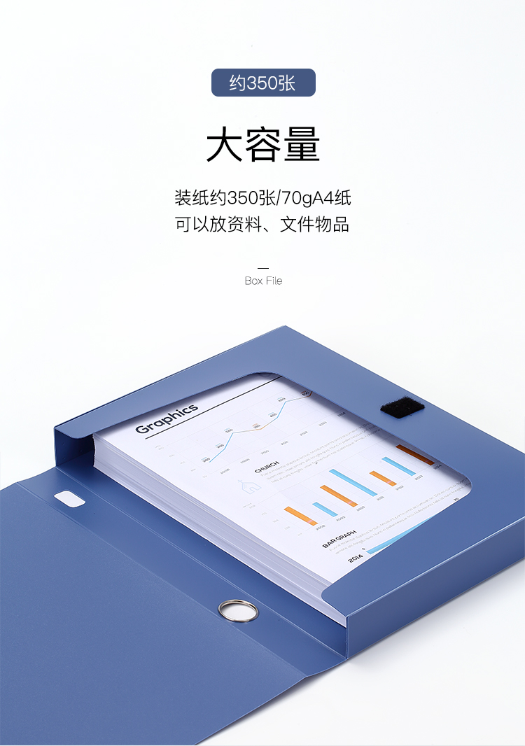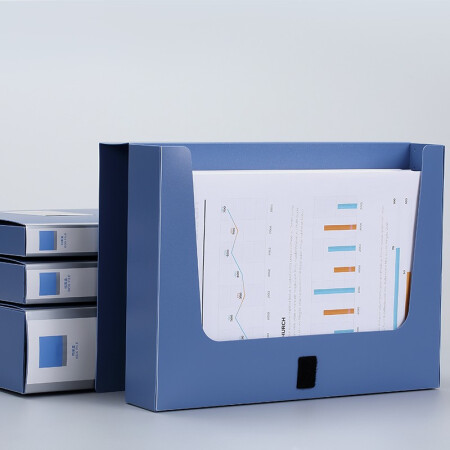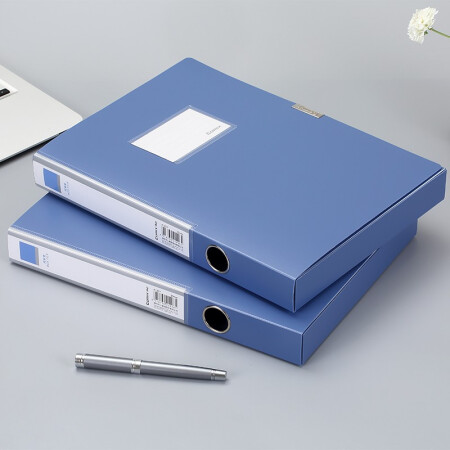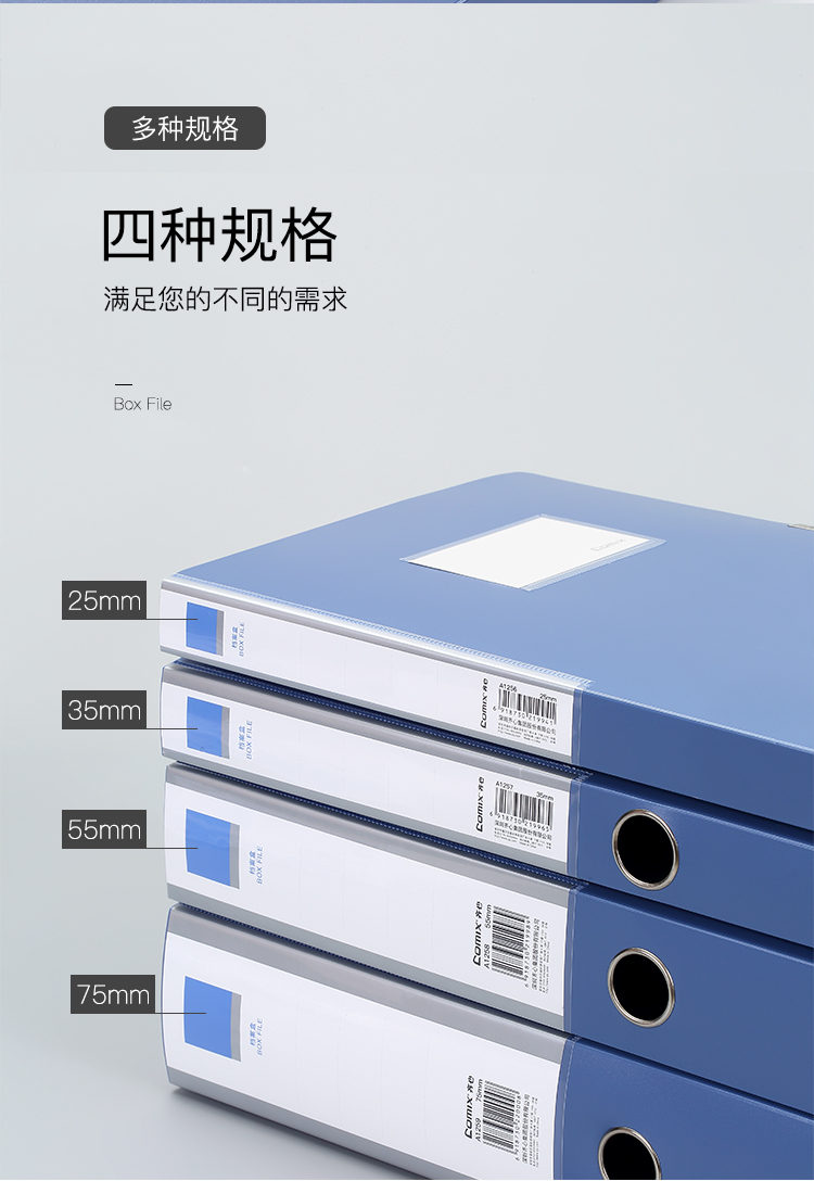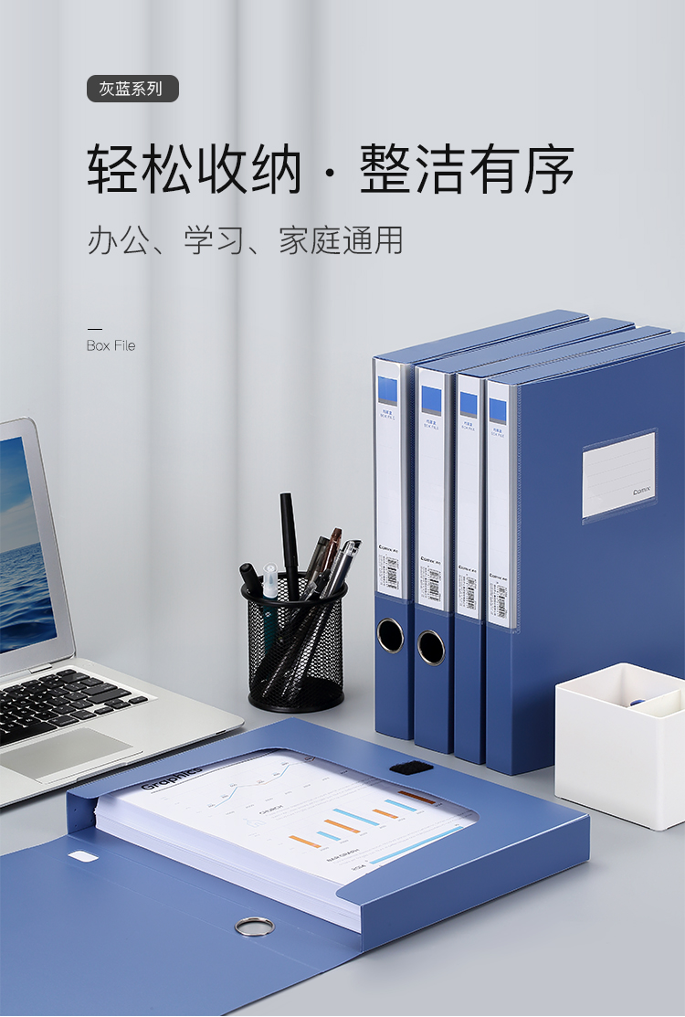 齐心 Comix 35mm加厚档案盒/A4文件盒/粘扣塑料资料盒 办公用品 灰蓝A1257