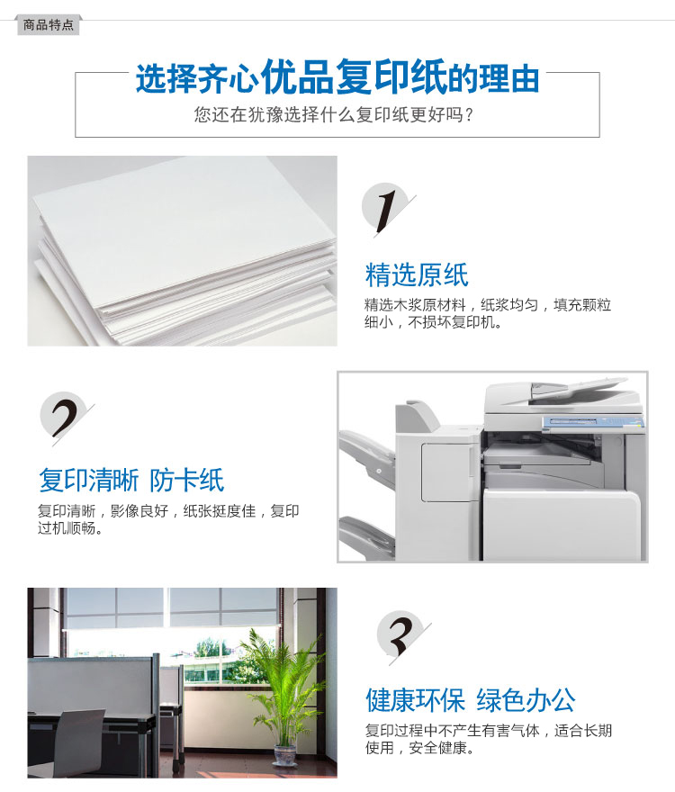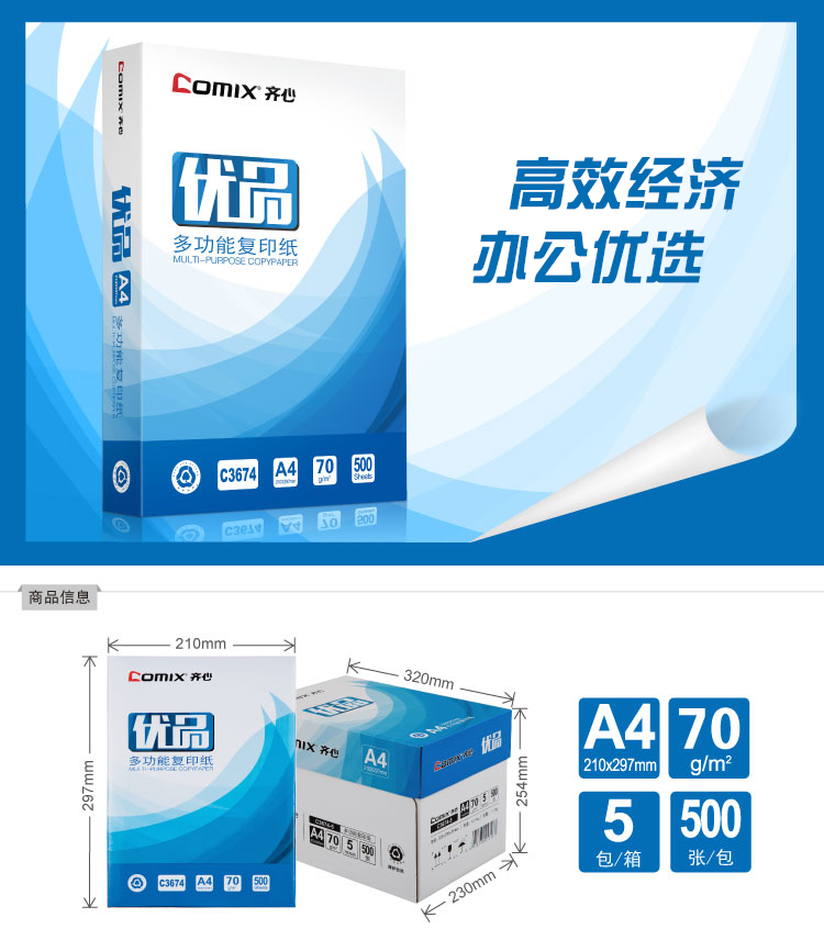 齐心 C3674-5 优品复印纸 A4 70g 5*500张