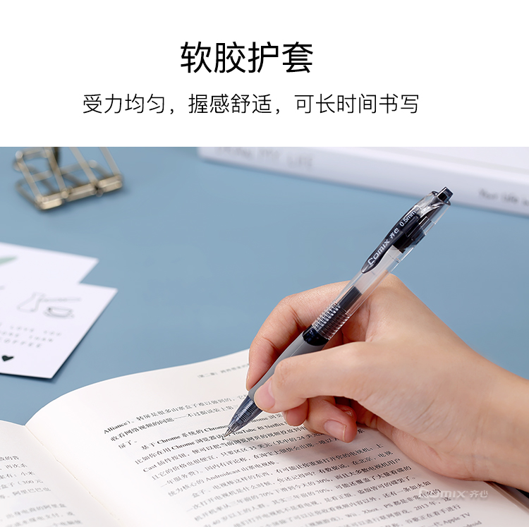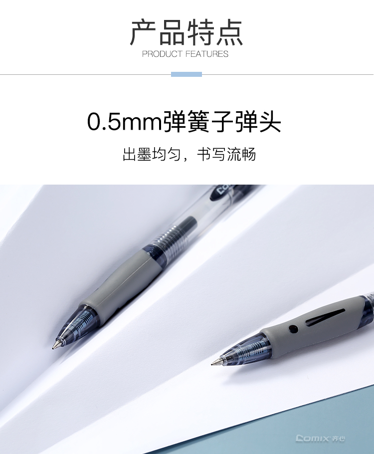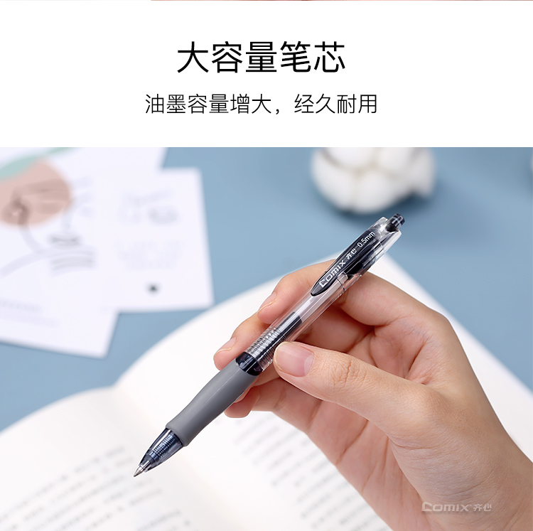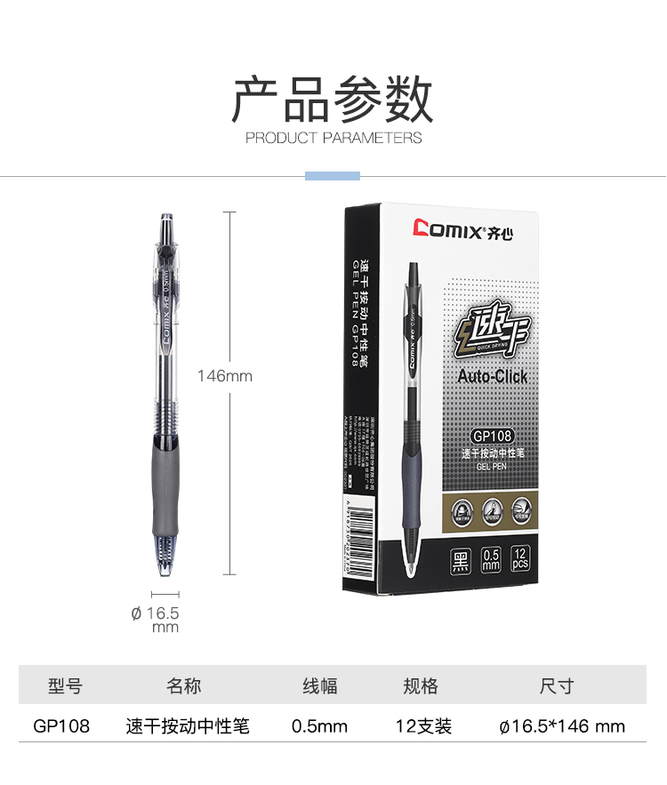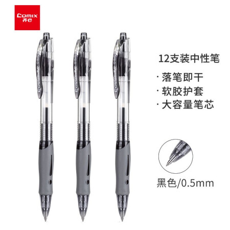 齐心 Comix 0.5mm速干子弹头黑色按动中性笔/水笔/签字笔12支/盒 GP108