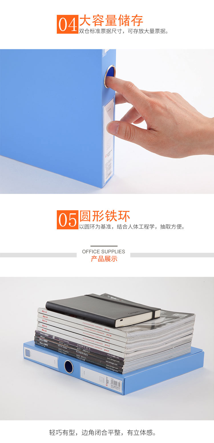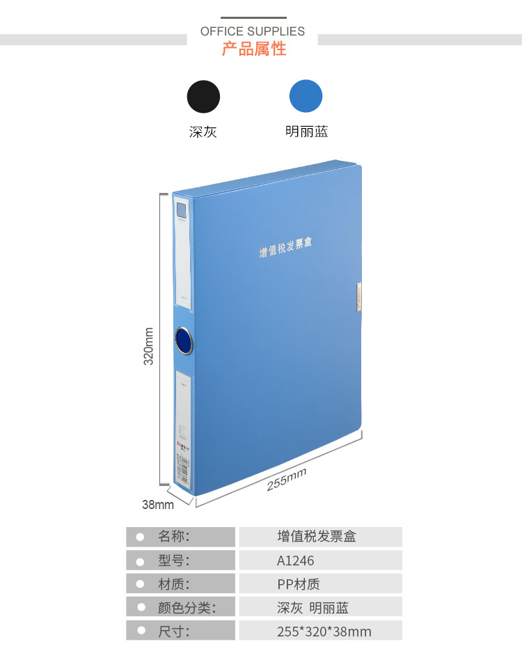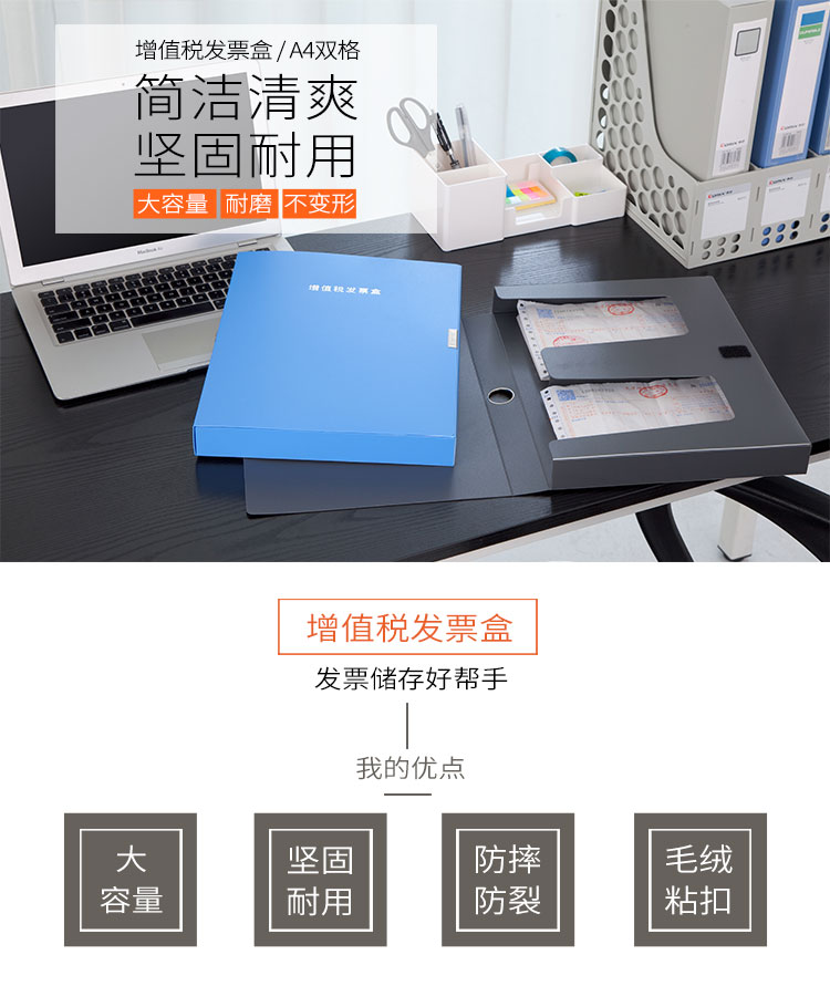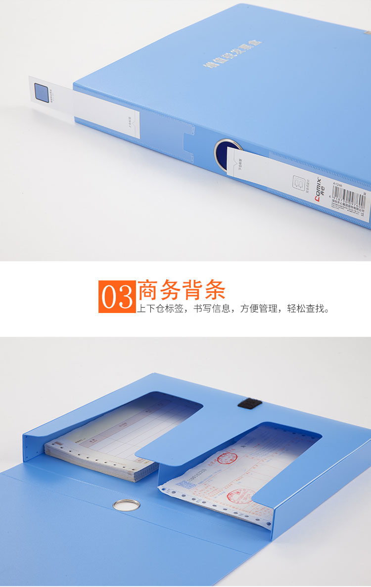 齐心 COMIX A4双格 增值税发票盒/票据夹/文件盒 A1246 蓝