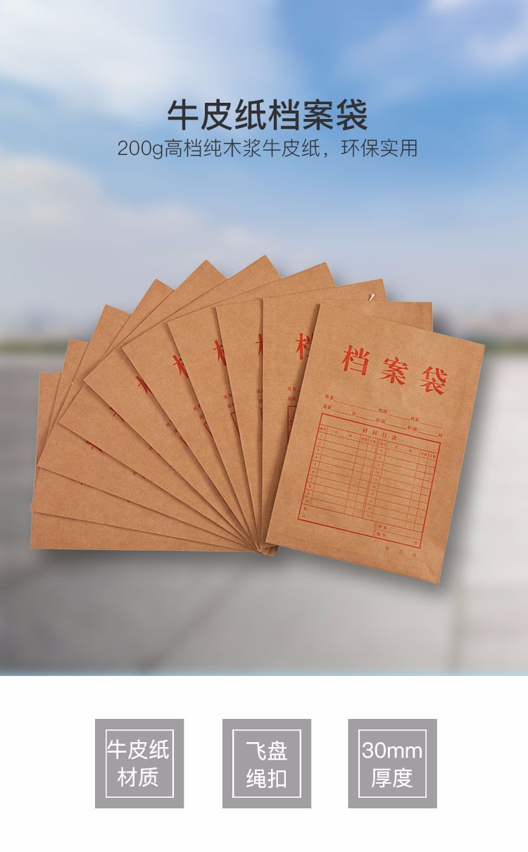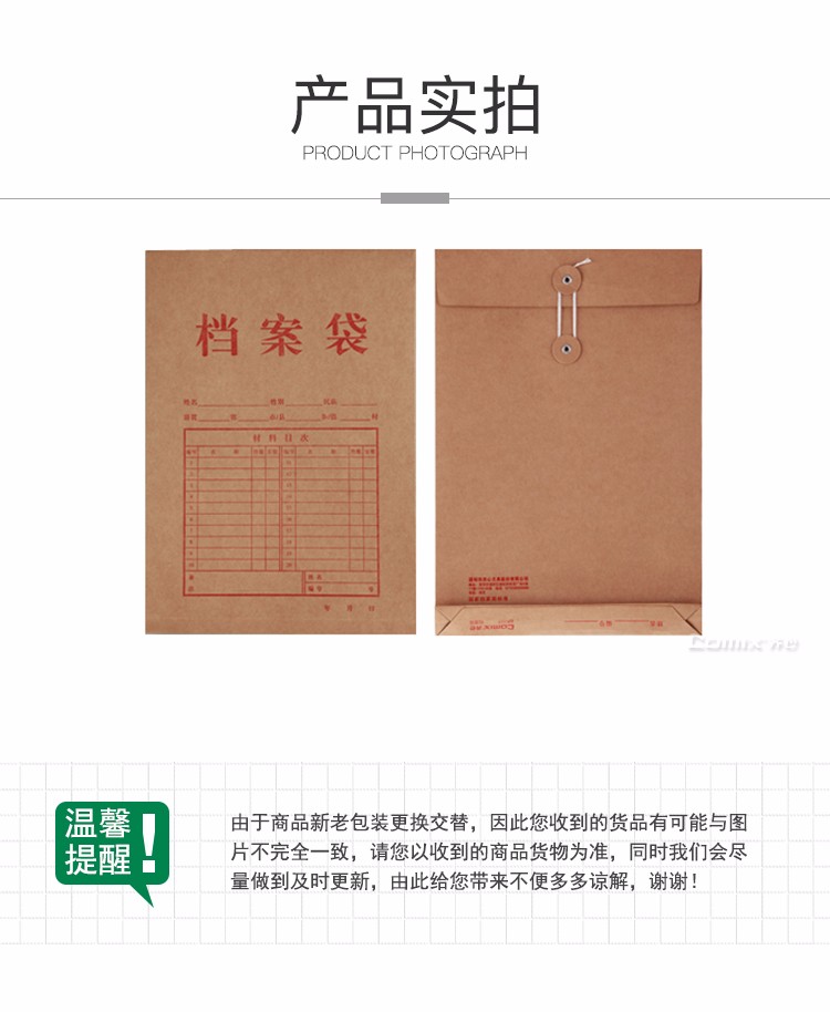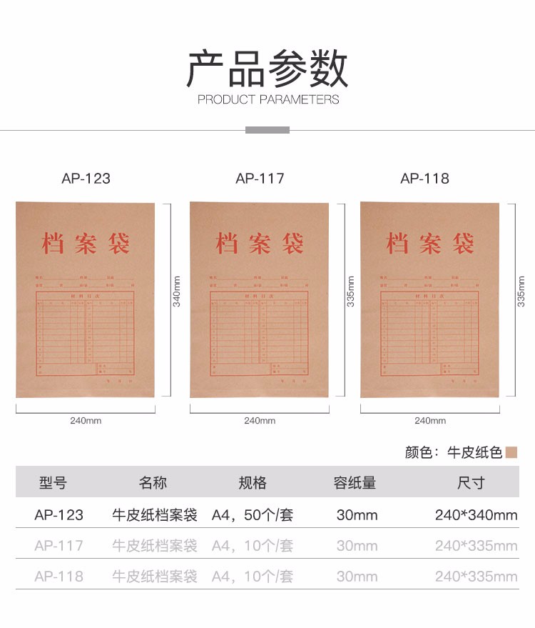 齐心 AP-123 本色国产牛皮纸 档案袋A A4 竖式 50个/套 褐色 50个