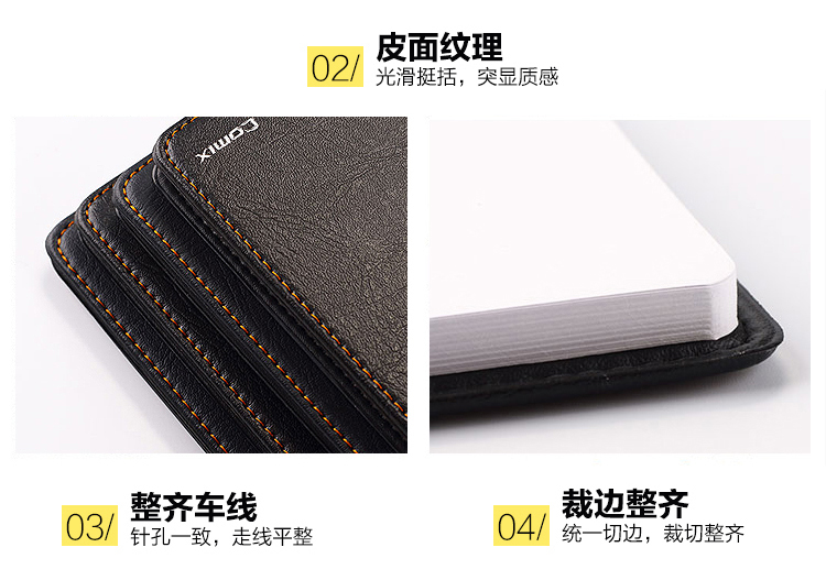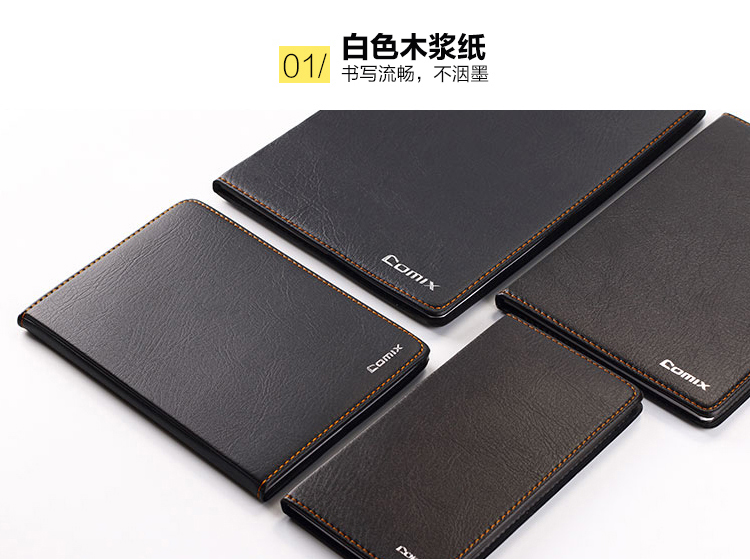 齐心C4612商务办公会议简约皮面本记事本笔记本黑色本子办公用品 18K黑 74张 C4611