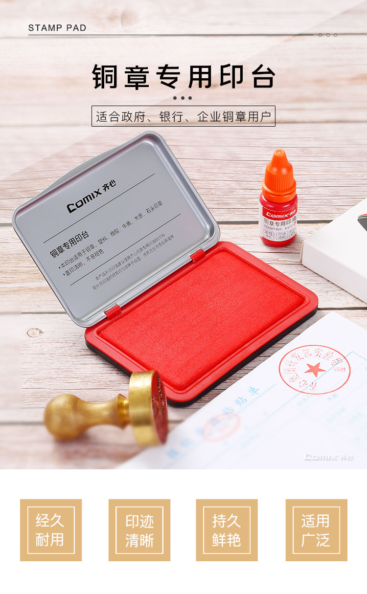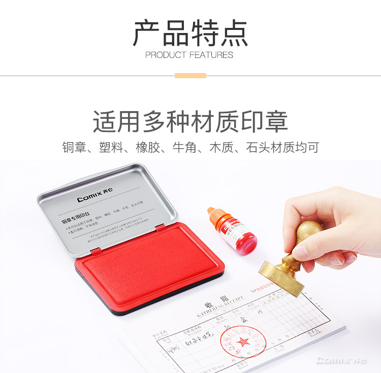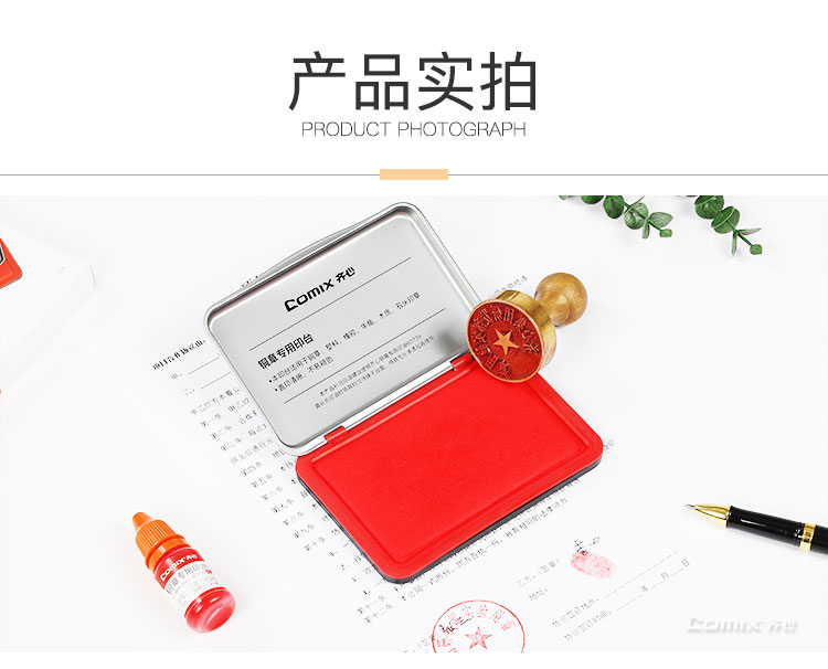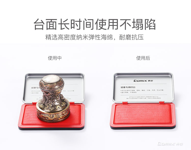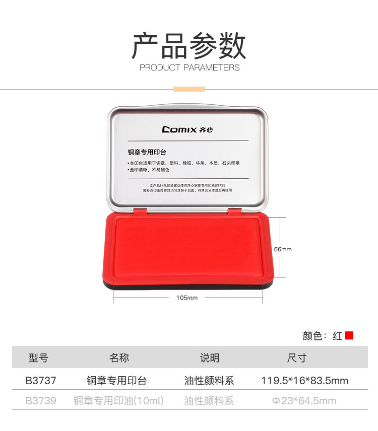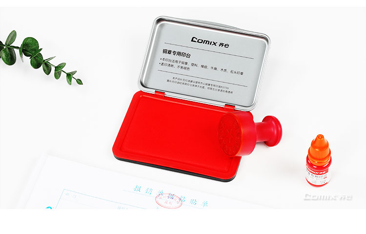 齐心(Comix)印泥油性高清财务办公专用印台快干印泥 红119.5*83.5*16mm B3737