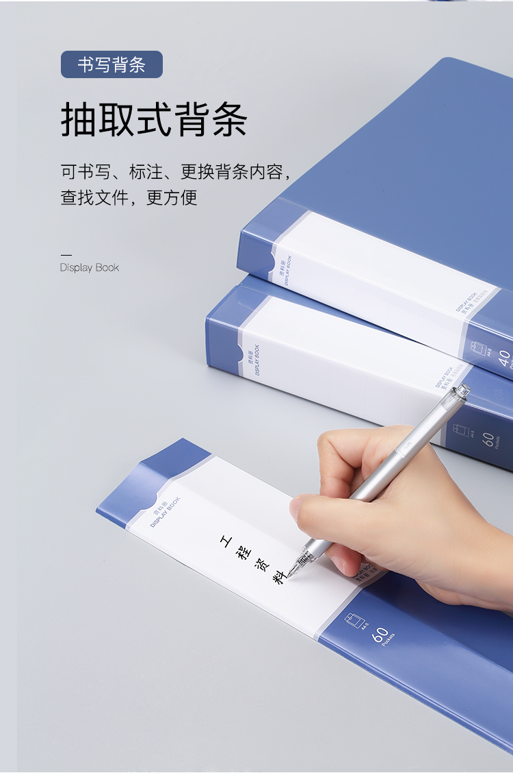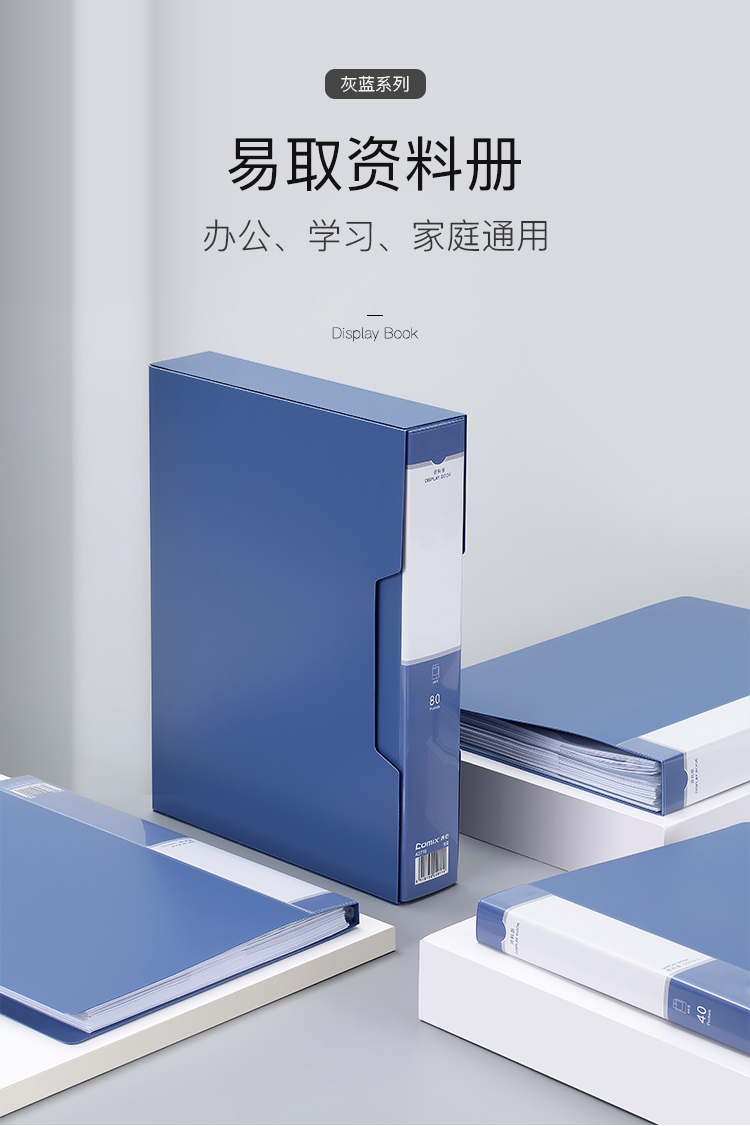 齐心 Comix A4/60页资料册/插袋文件册/活页文件夹/文件收纳袋 办公文具 灰蓝A3776