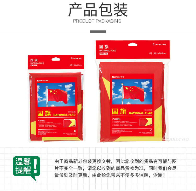 齐心 comix 防水防晒经久耐用2号国旗/五星红旗 160*240cm B1032