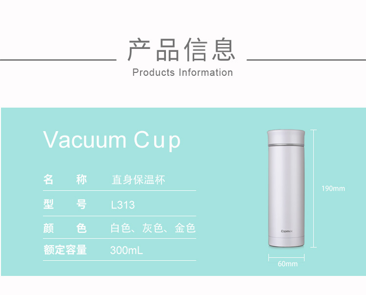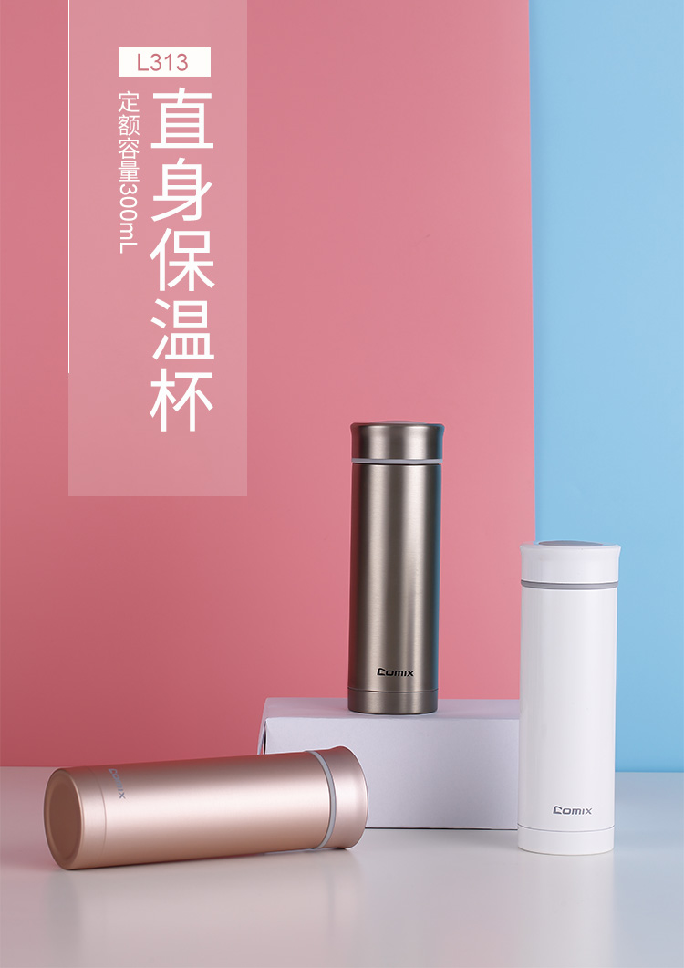 齐心(COMIX)L313 不锈钢保温杯免揭盖保温杯 白色保温杯 2/个