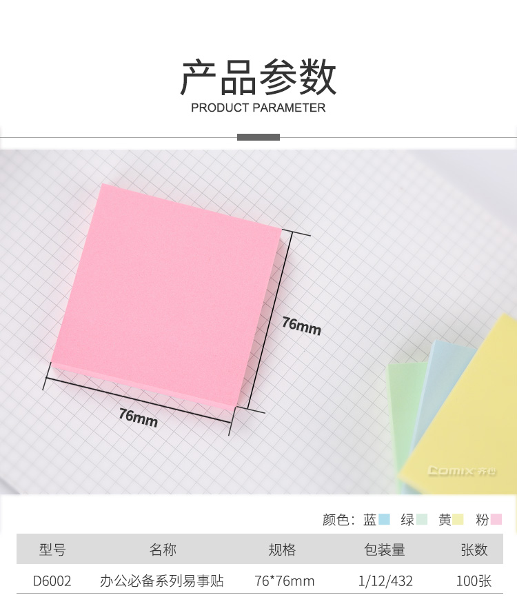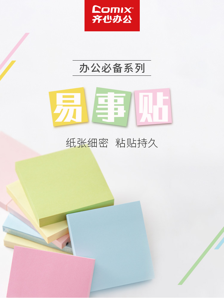 齐心 Comix 便利贴/便签纸/便签本/易事贴/百事贴 76x76mm 12本/1200张 D6002 颜色随机