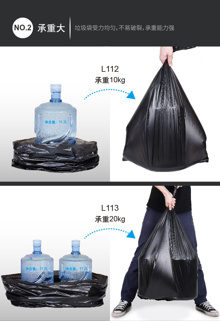 齐心 Comix 20个装 大号垃圾袋80*100cm家用/办公 黑色 L113