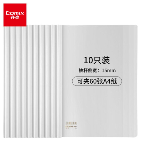 齐心 Comix 10个装 加厚抽杆夹/A4文件夹 报告夹 活页抽杆式 Q312 白色 办公文具