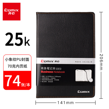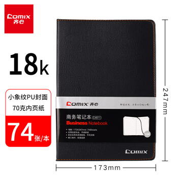 齐心C4612商务办公会议简约皮面本记事本笔记本黑色本子办公用品 18K黑 74张 C4611