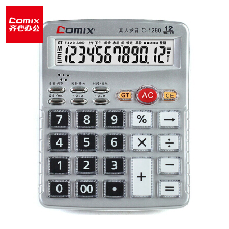 齐心 Comix 计算器 学生语音办公学习通用 12位 办公用品C-1260