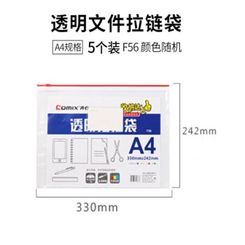 齐心 Comix F54/F56拉链袋密封防水档案袋A4/A5文件袋学生文具归类办公收纳袋5只装 F56 A4 拉链袋 五个装价