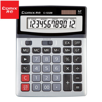 齐心(COMIX)计算器太阳能双电源 12位办公财务专用电脑按键大屏幕 舒视办公商务计算机调可视角度 C-1232M 计算器 大台 全能办公