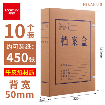 齐心档案盒蓝色塑料A4文件盒资料盒牛皮纸色文件夹收纳办公用品批发 【50mm10个装】AG-50