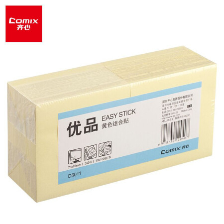 齐心 Comix 10本装便利贴/便签纸/便签本/易事贴 76mm×76mm/100页 黄色 D5011