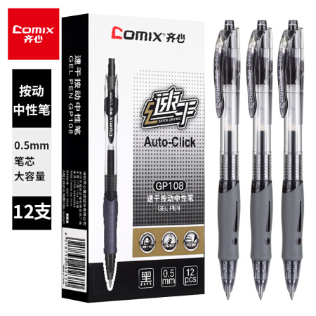 齐心 Comix 0.5mm速干子弹头黑色按动中性笔/水笔/签字笔12支/盒 GP108