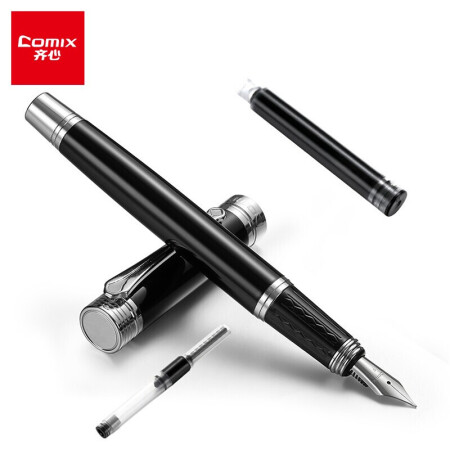 齐心 Comix 品致精品锰钢钢笔墨水笔配吸墨器墨囊套装 明尖 FP001 黑色