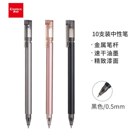齐心(Comix) 速干黑色金属速干中性笔0.5mm签字笔水笔 四色10支/盒 GPP026