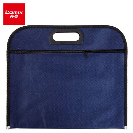 齐心 Comix 事务包拉链袋 手提袋商务会 议包 文件资料收纳包 牛津布双格文件袋/资料袋 蓝色A1670